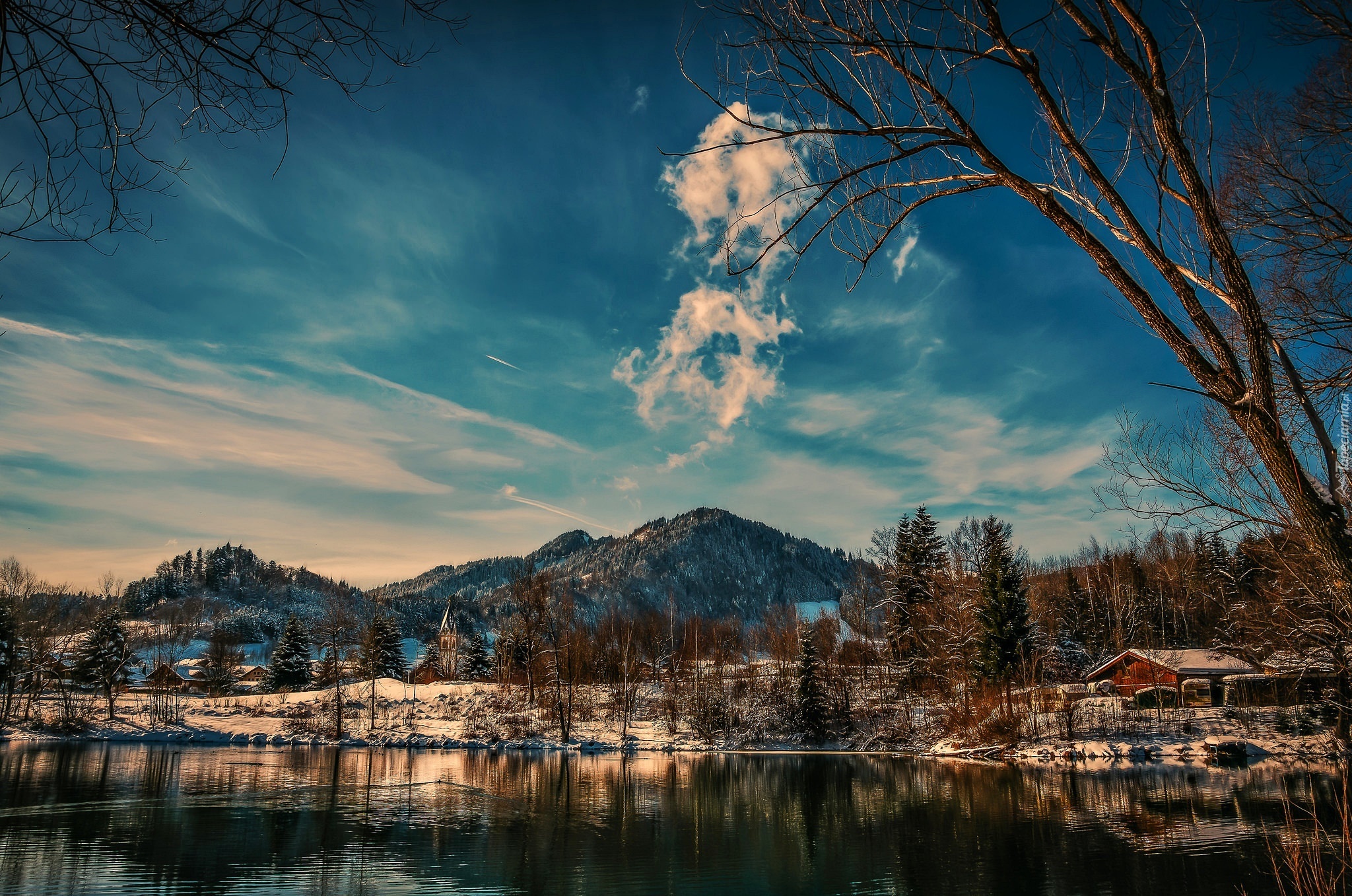 Edytor tapety: Jezioro, Góry, Dom, Zima