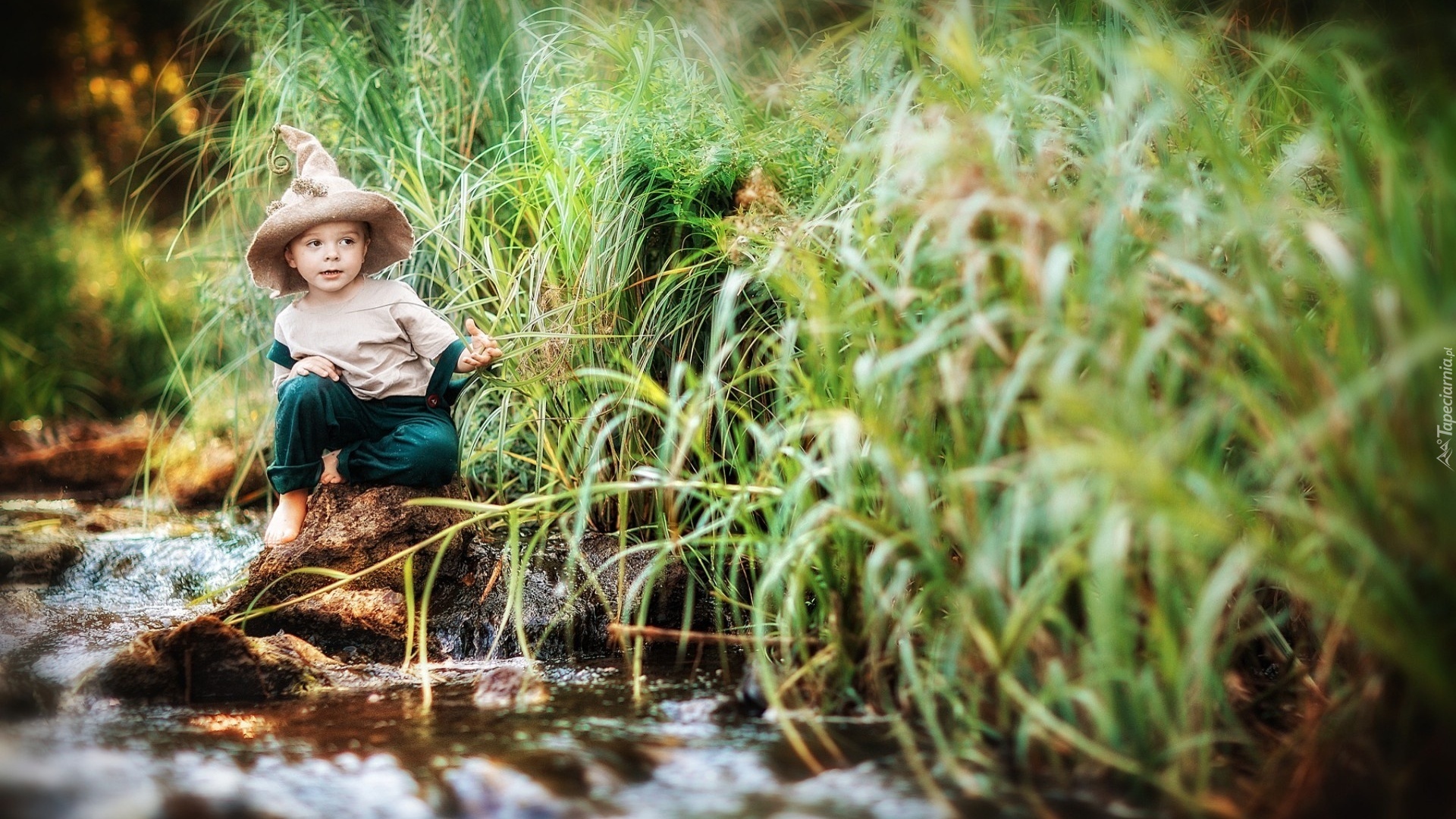 Edytor tapety: Dziecko, Skrzat, Rzeka, Trawy