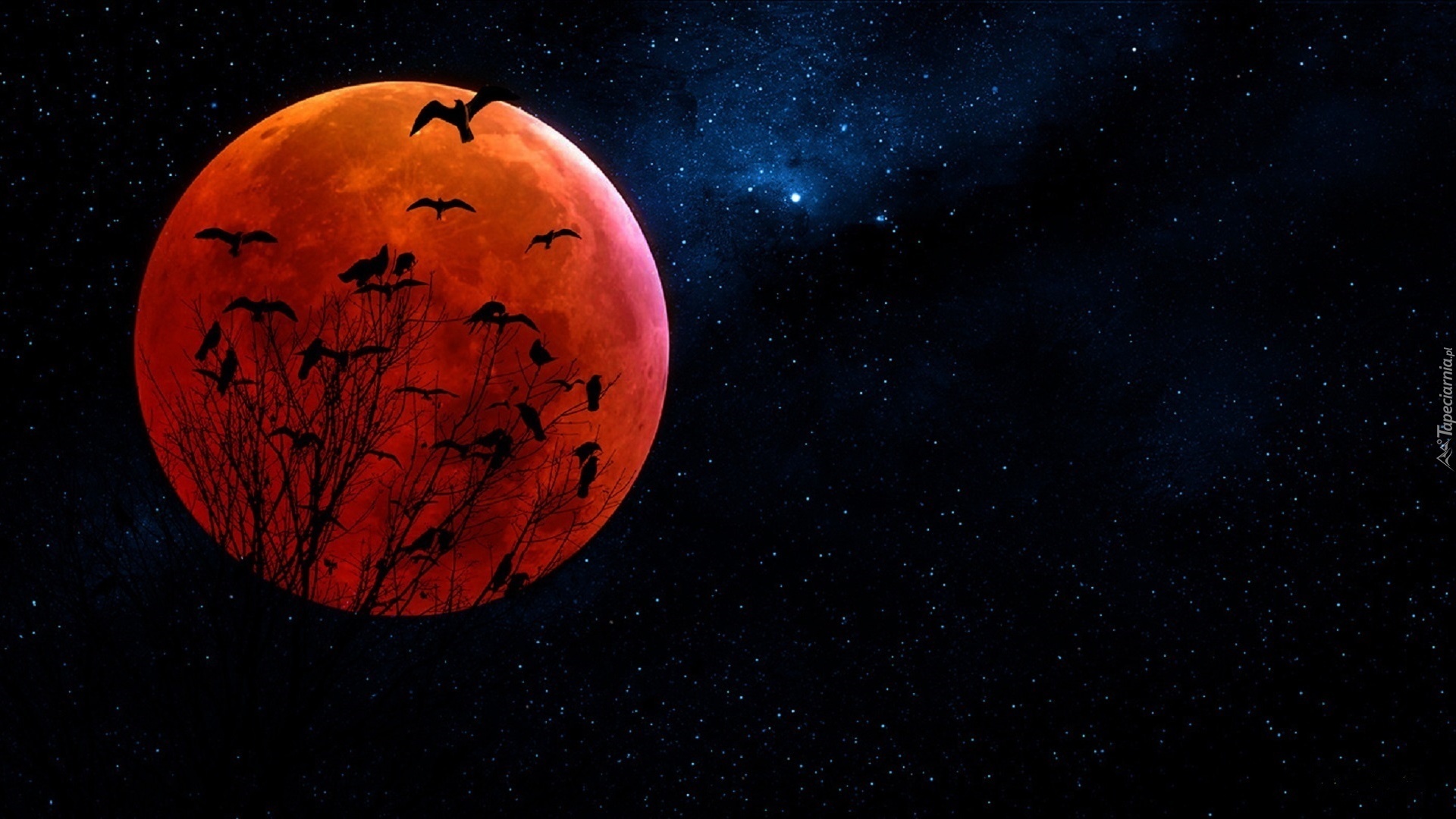 Edytor tapety: Noc, Księżyc, Ptaki