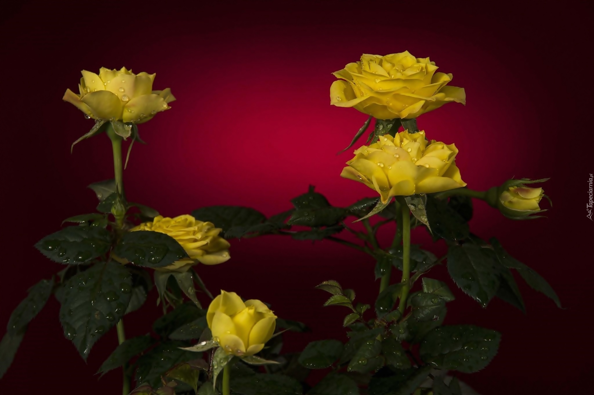 Edytor tapety: Żółte, Róże, Krople, Rosy