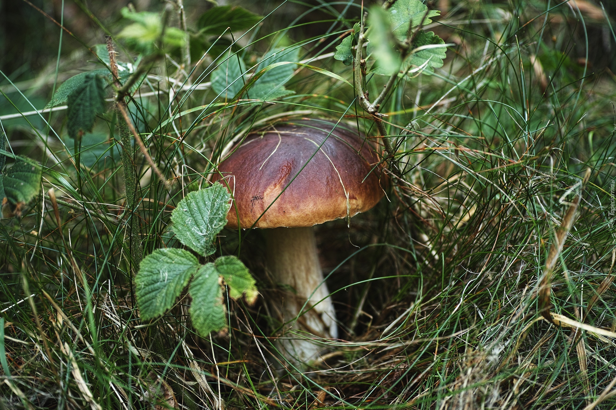 Edytor tapety: Podgrzybek, Ściółka, Trawa, Liście
