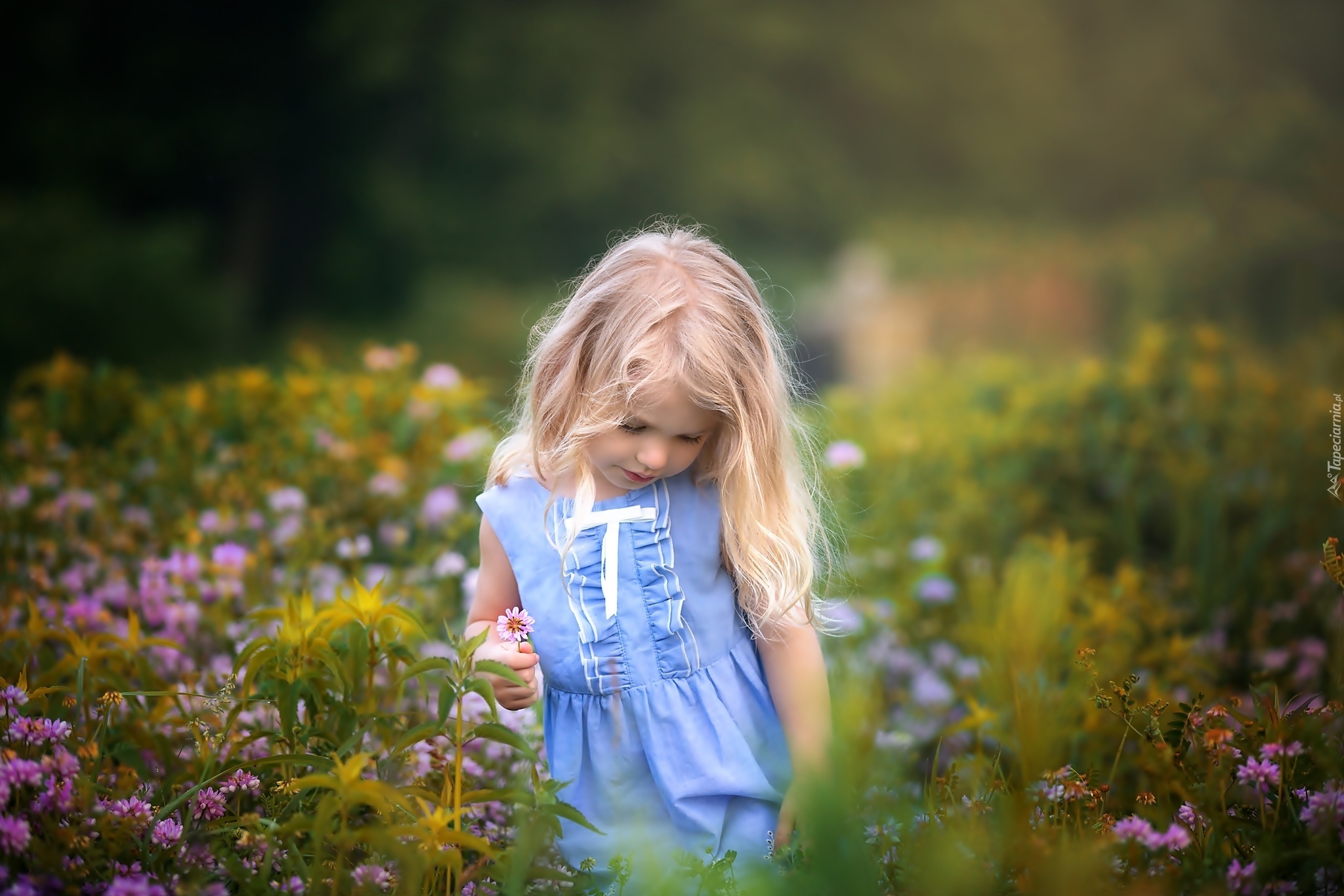 Edytor tapety: Mała, Dziewczynka, Łąka, Kwiaty