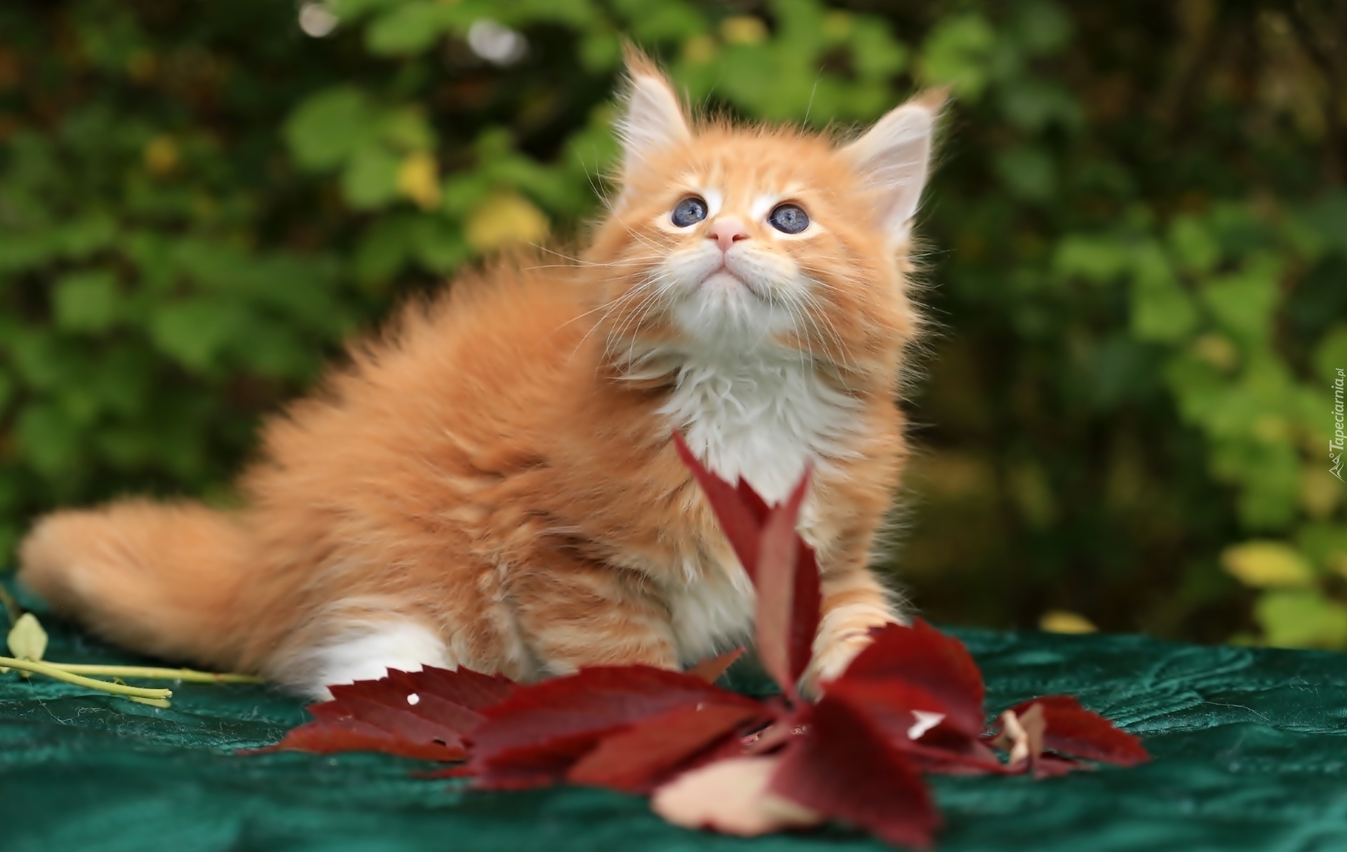 Edytor tapety: Mały, Słodki, Rudy, Kotek, Jesienne, Liscie