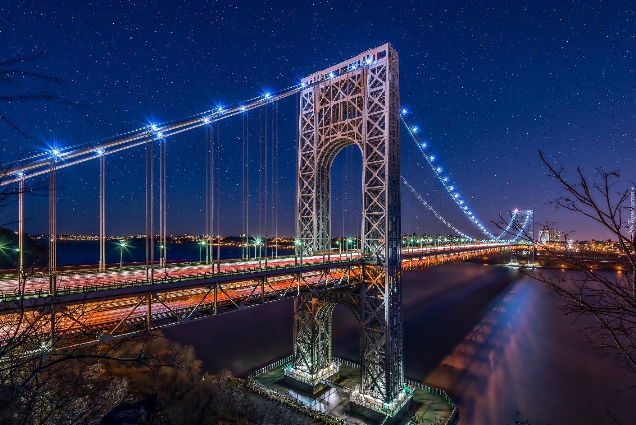 Edytor tapety: Rzeka, Most, Nowy Jork, Noc
