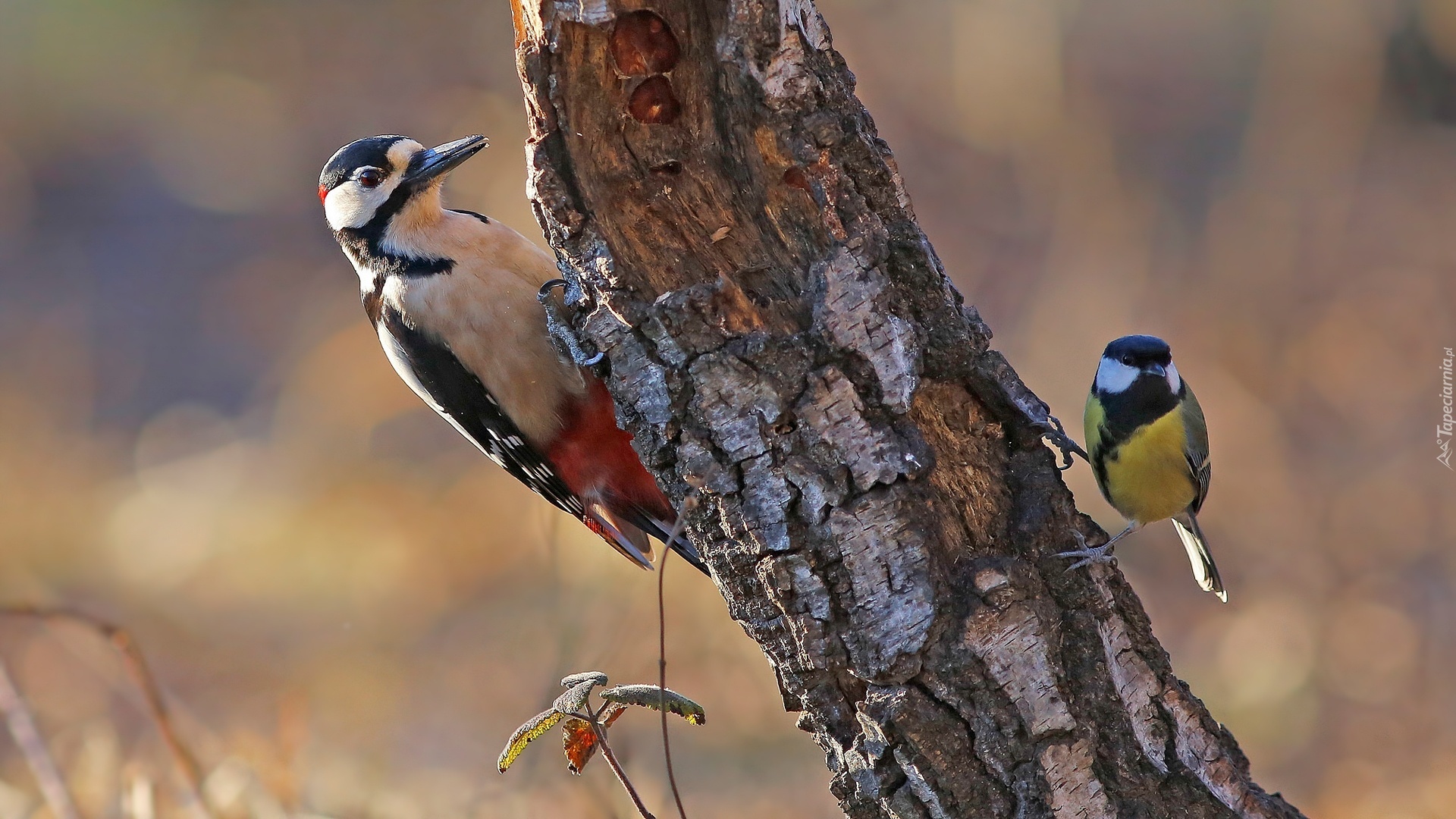 Edytor tapety: Ptaki, Dzięcioł, Sikorka