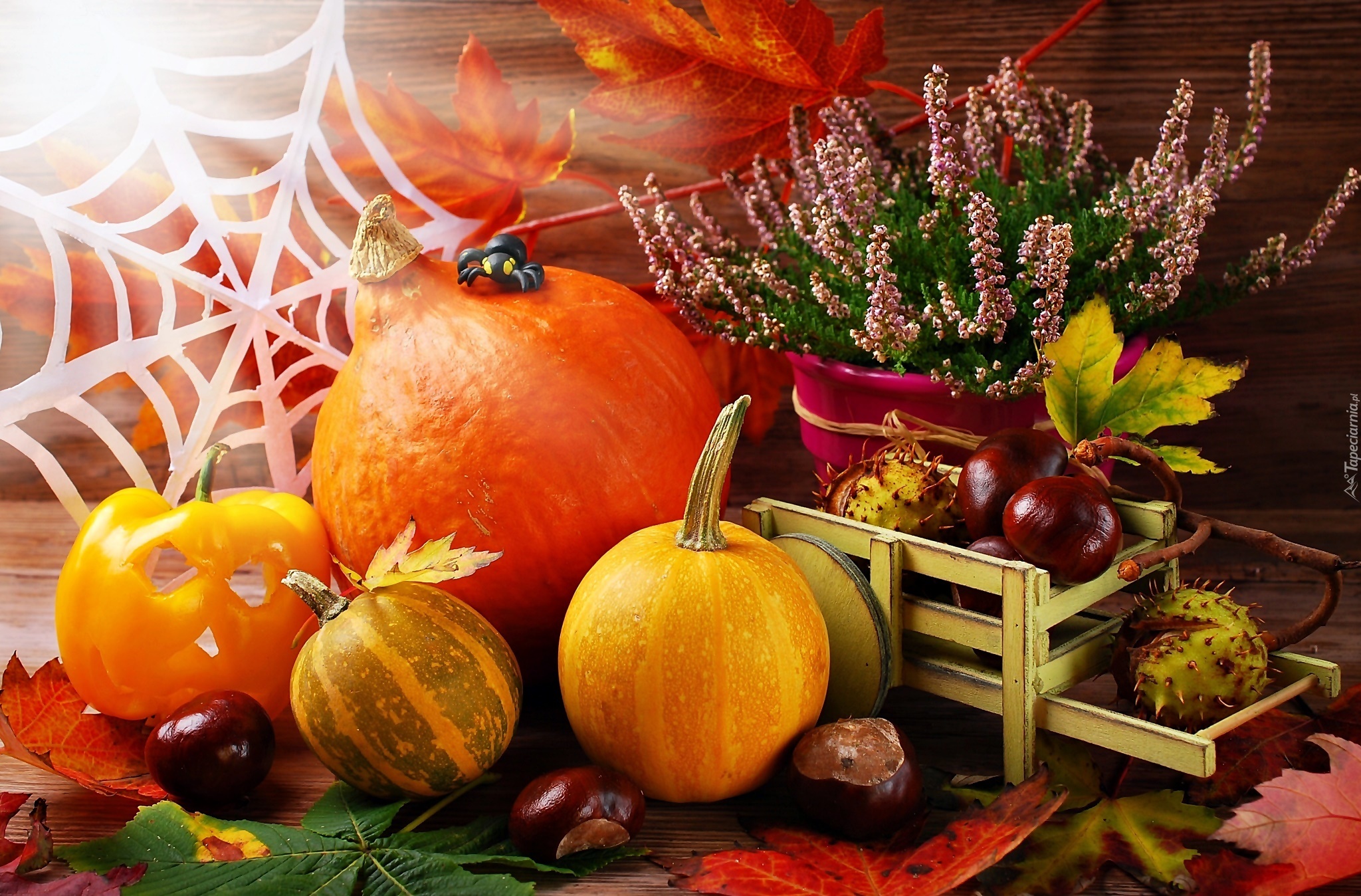 Edytor tapety: Dynia, Wrzos, Kasztany, Dekoracja, Jesień