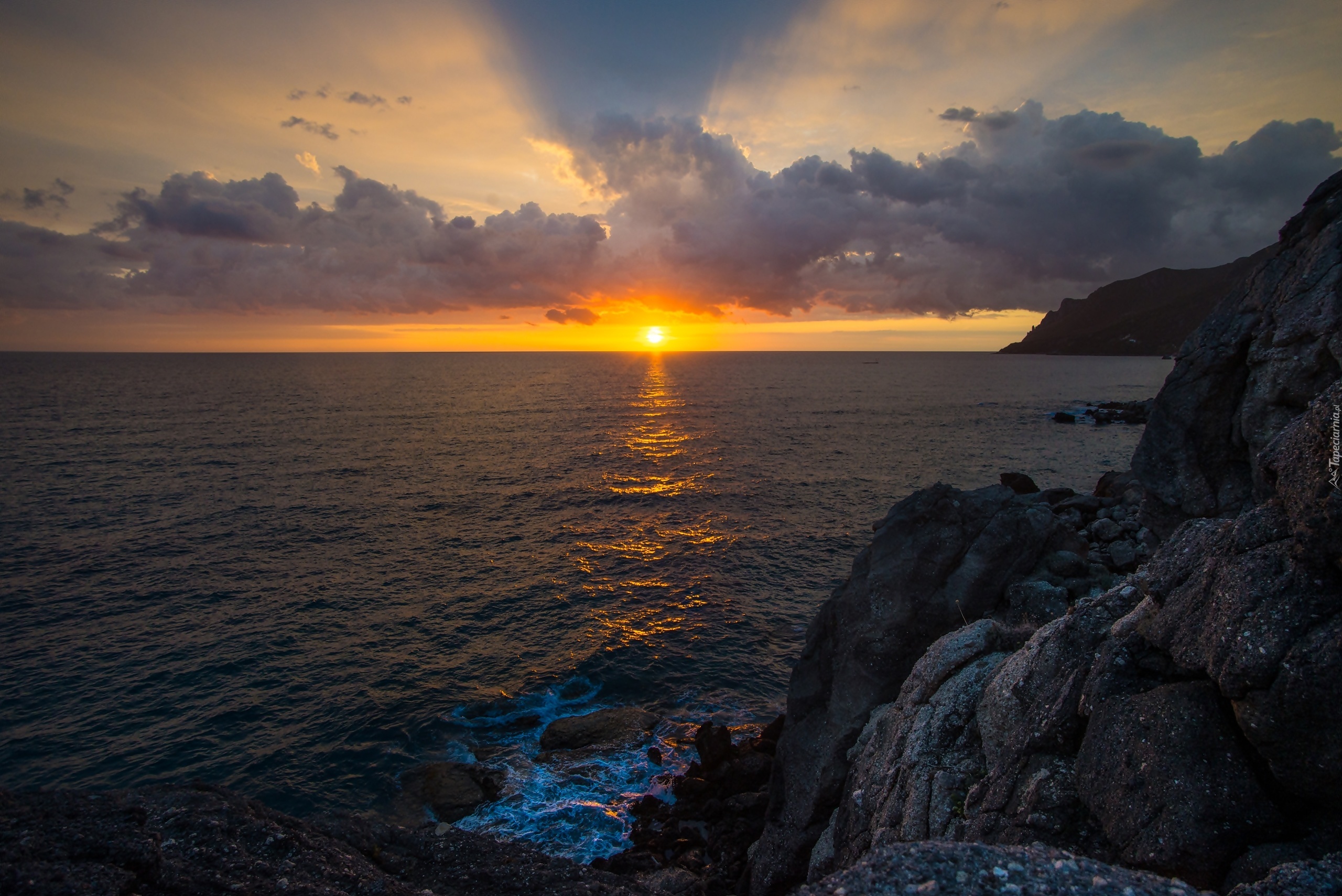 Edytor tapety: Morze, Skały, Zachód Słońca, Wybrzeże