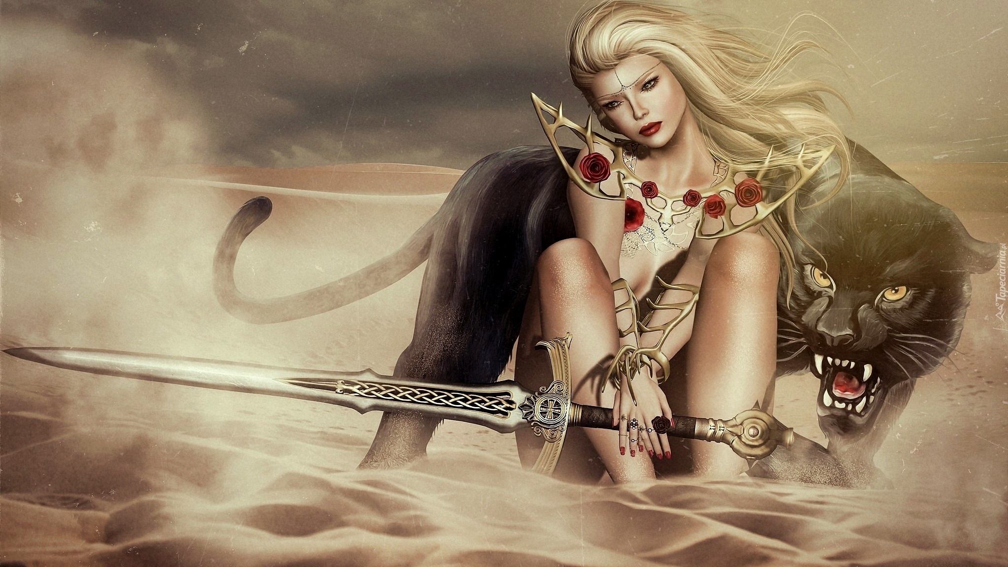 Edytor tapety: Fantasy, Dziewczyna, Wojowniczka, Pantera