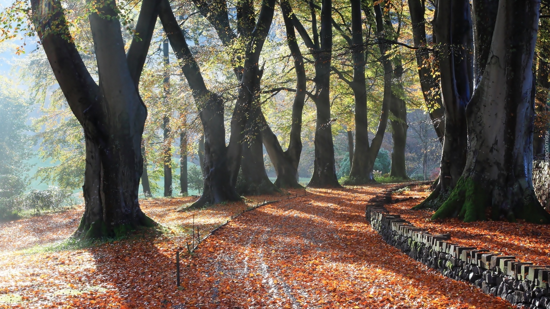 Edytor tapety: Park, Droga, Drzewa, Liście, Jesień