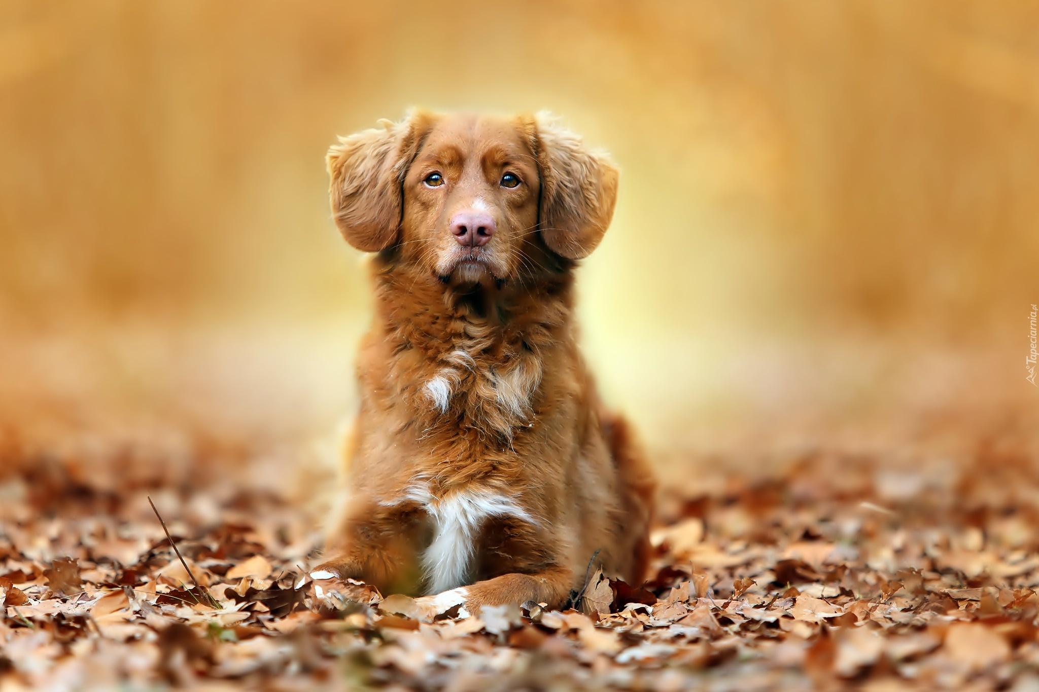Edytor tapety: Rudy, Piesek, Portret, Liście, Jesień