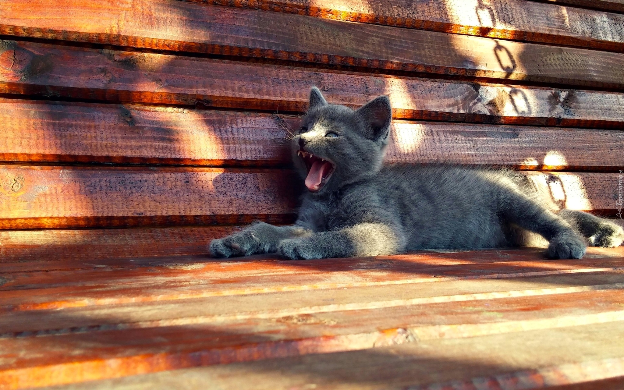 Edytor tapety: Zadziorny, Mały, Kotek, Ławka