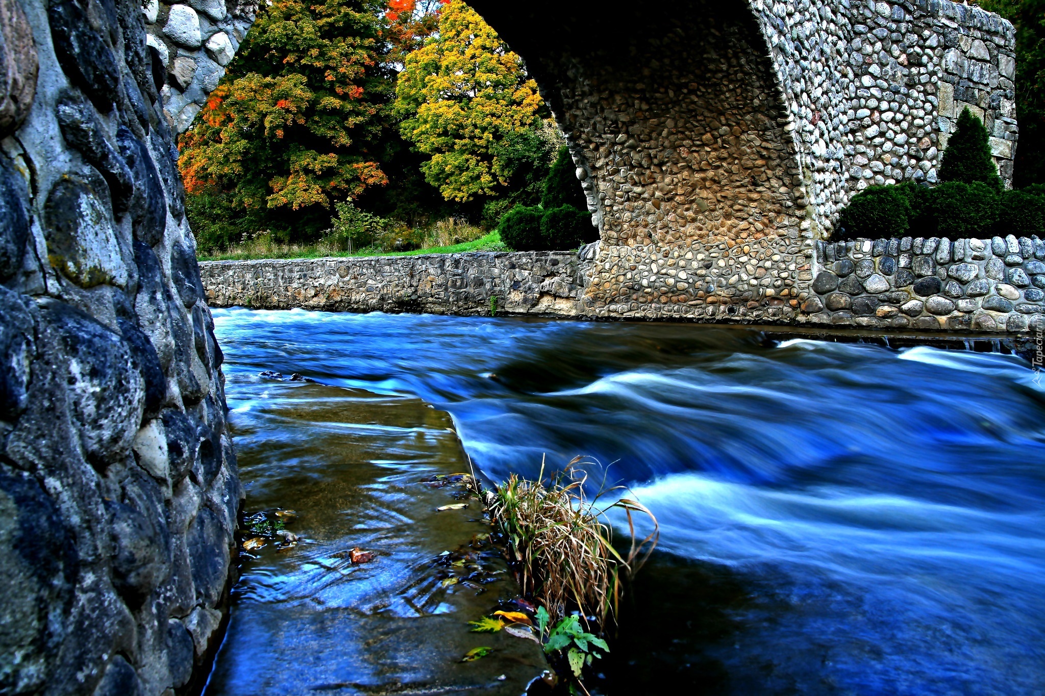 Edytor tapety: Rzeka, Most, Drzewa, Jesień