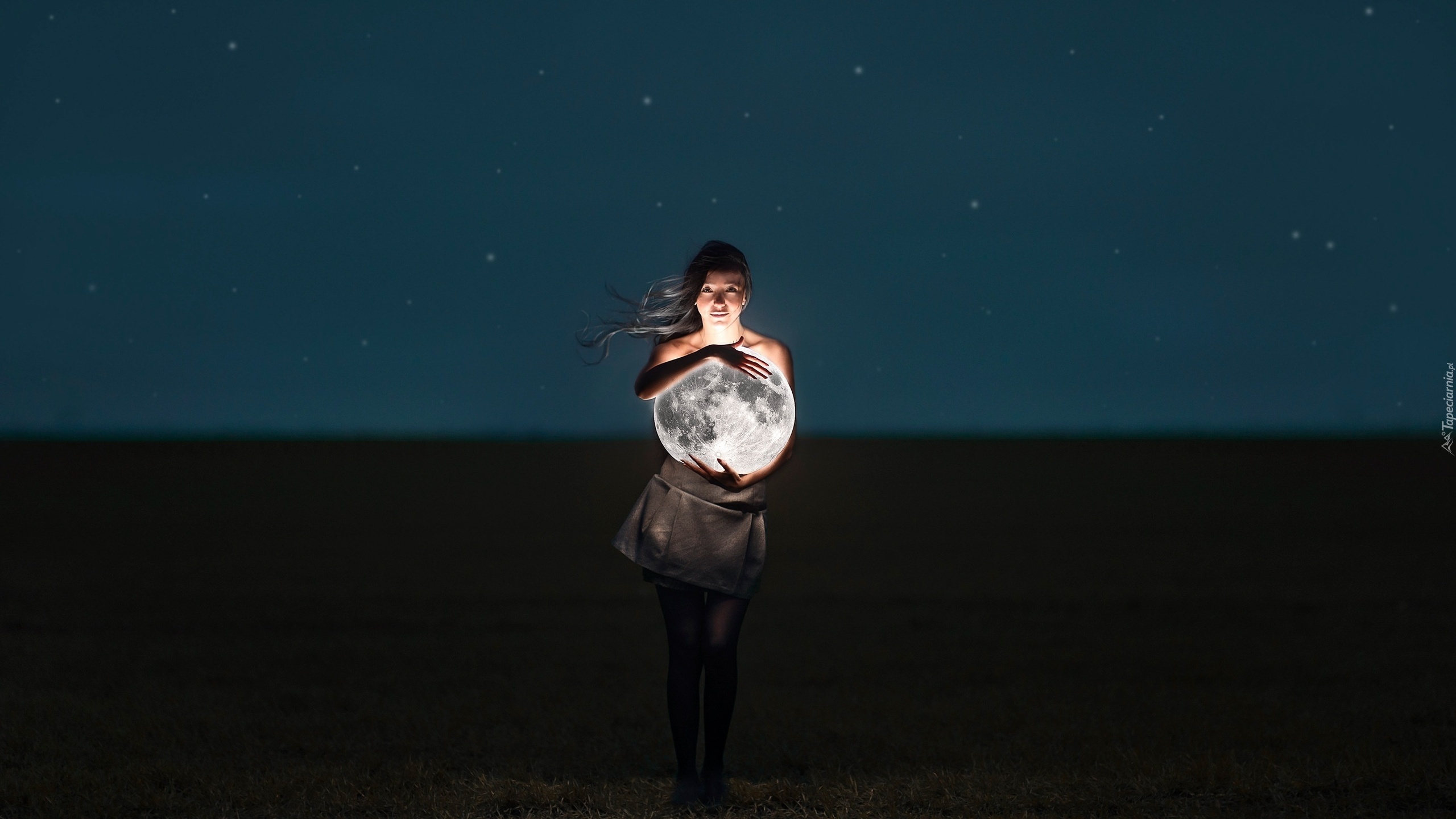 Edytor tapety: Noc, Dziewczyna, Oświetlona, Kula, Ziemska, Ziemia