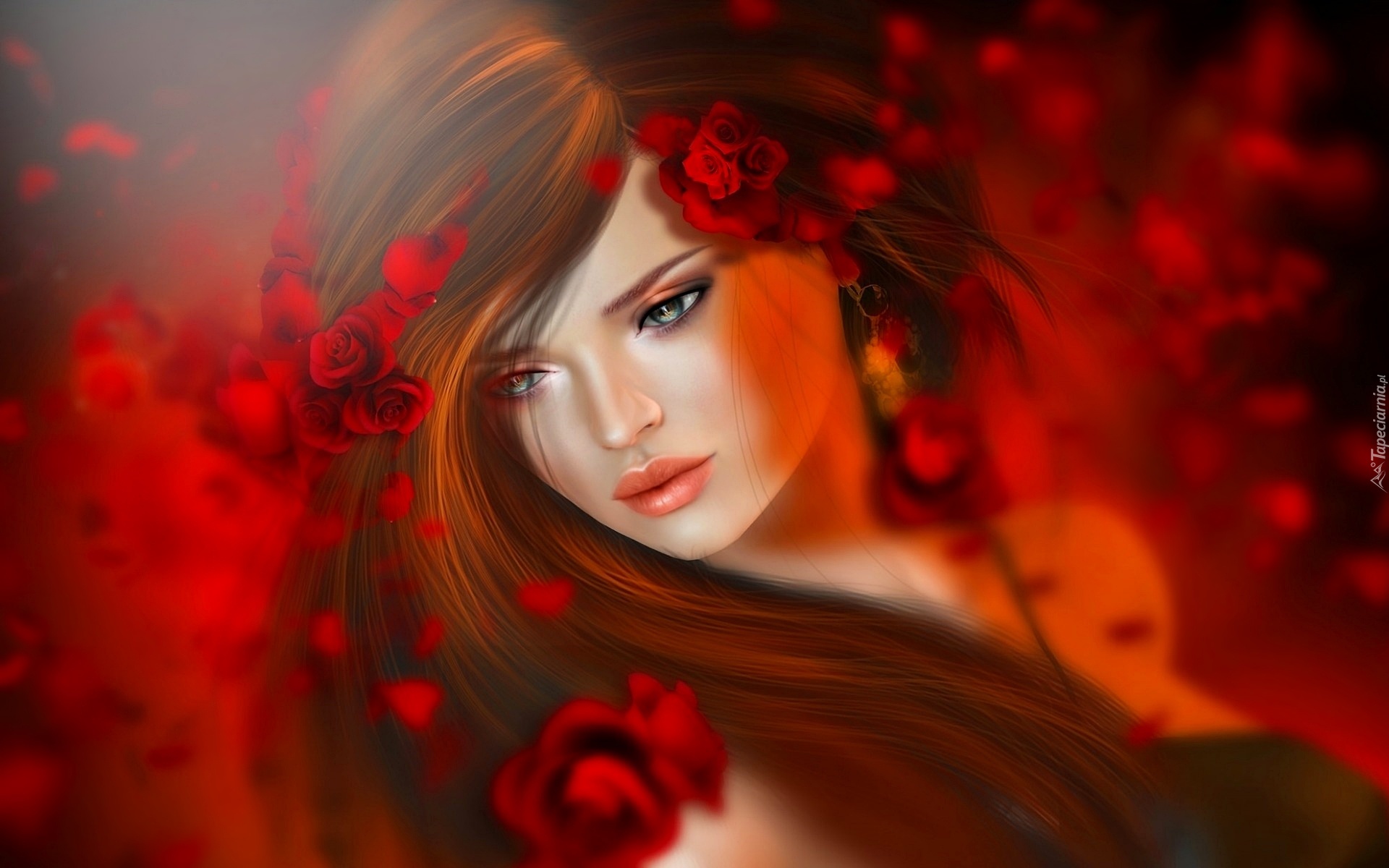 Edytor tapety: Kobieta, Czerwień, Grafika, Makijaż