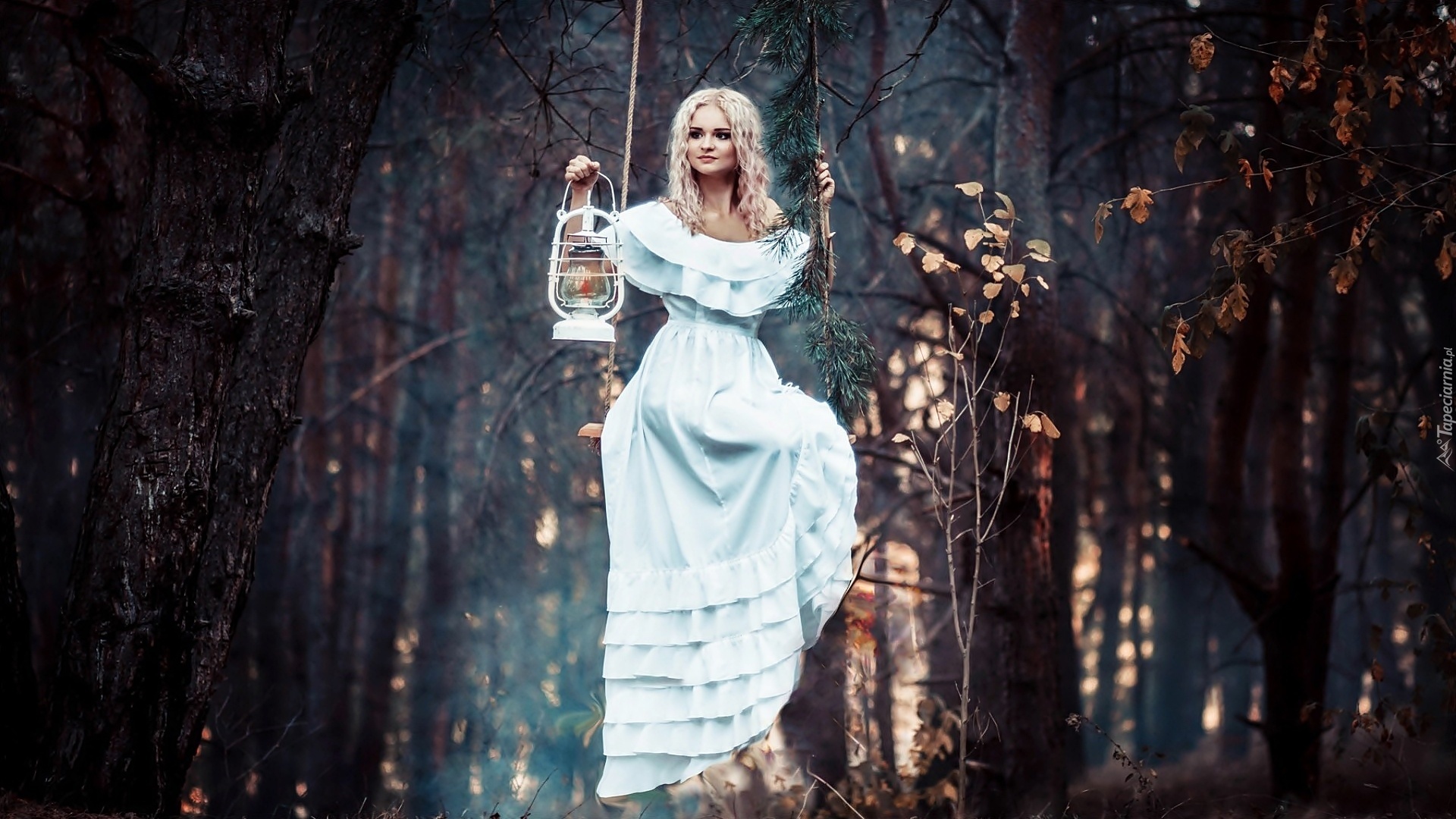Edytor tapety: Las, Dziewczyna, Lampion, Latarenka
