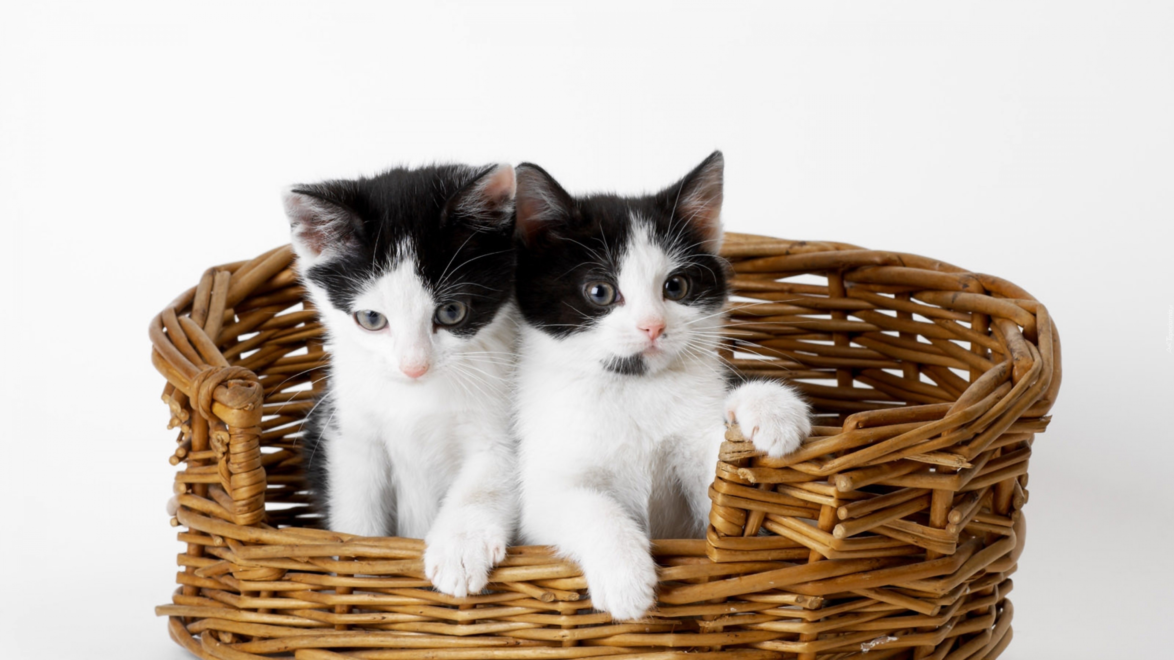 Edytor tapety: Dwa, Czarno, Białe, Kotki, Kosz