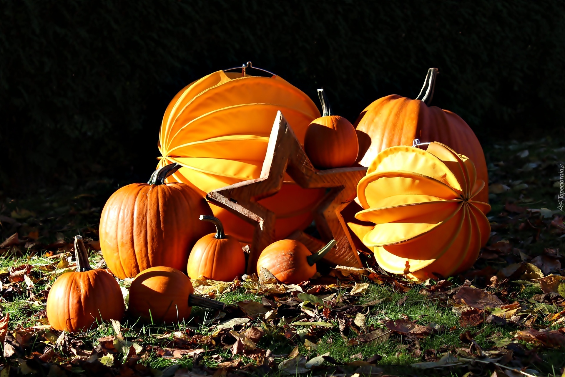 Edytor tapety: Halloween, Dynie, Liście, Gwiazda