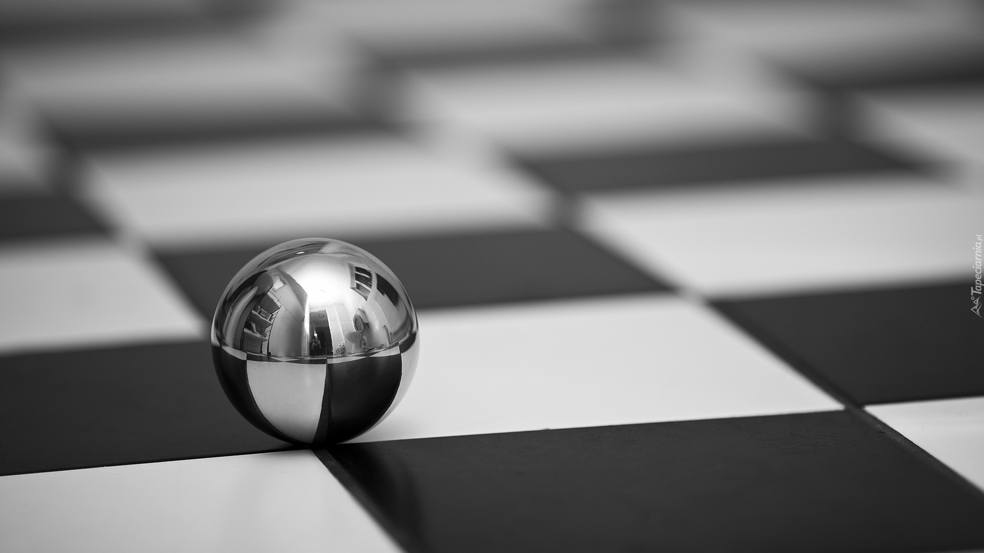 Edytor tapety: Srebrna, Kulka, 3D, Szachownica