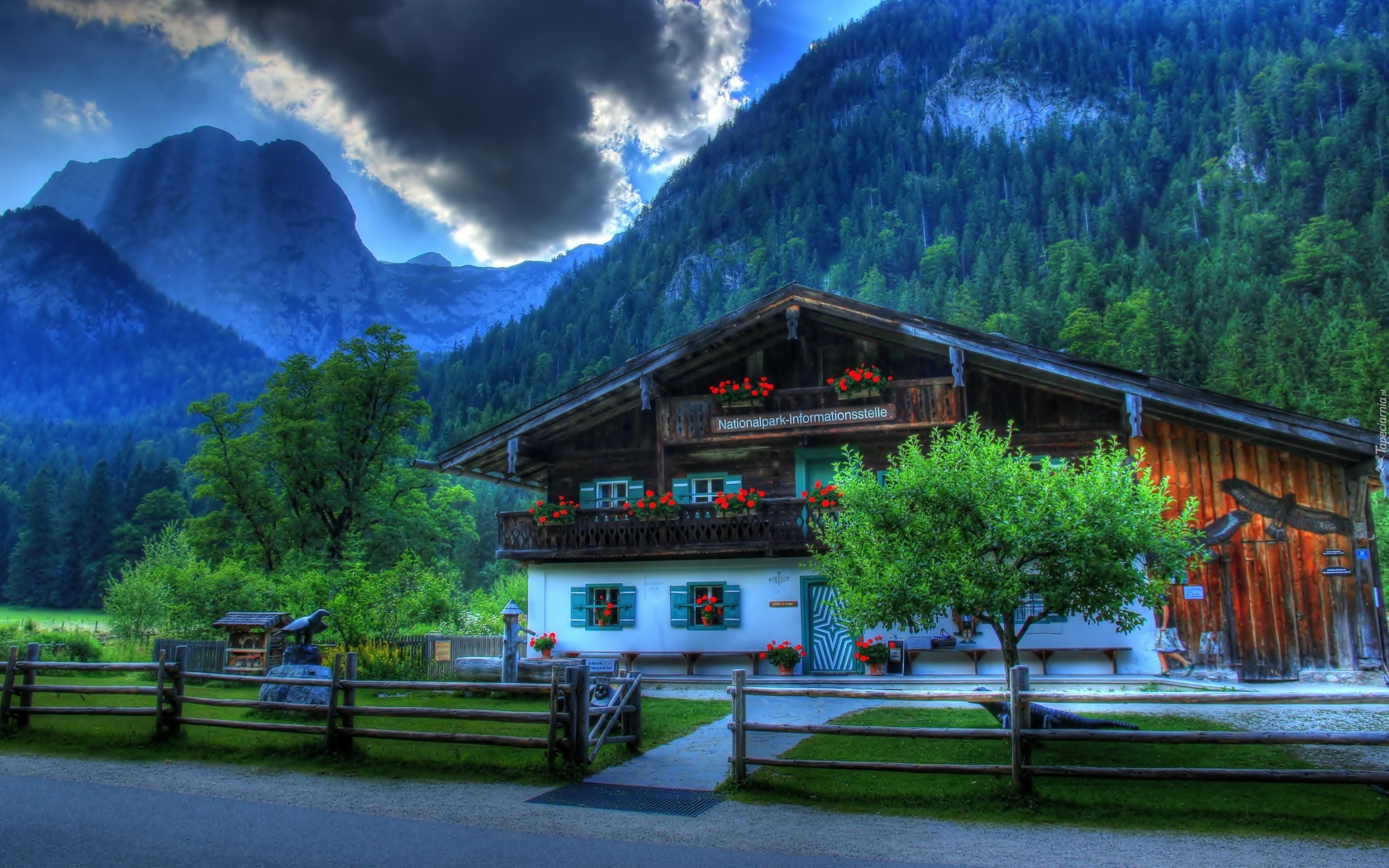 Edytor tapety: Miejscowość, Ramsau, Bawaria, Dom, Góry, Alpy, Bawarskie, Niemcy