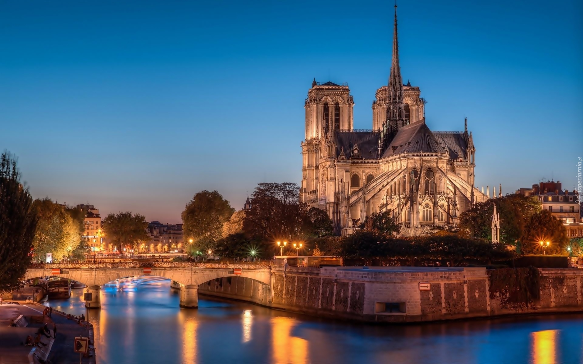 Edytor tapety: Rzeka, Most, Światła, Notre Dame, Paryż, Francja, Noc
