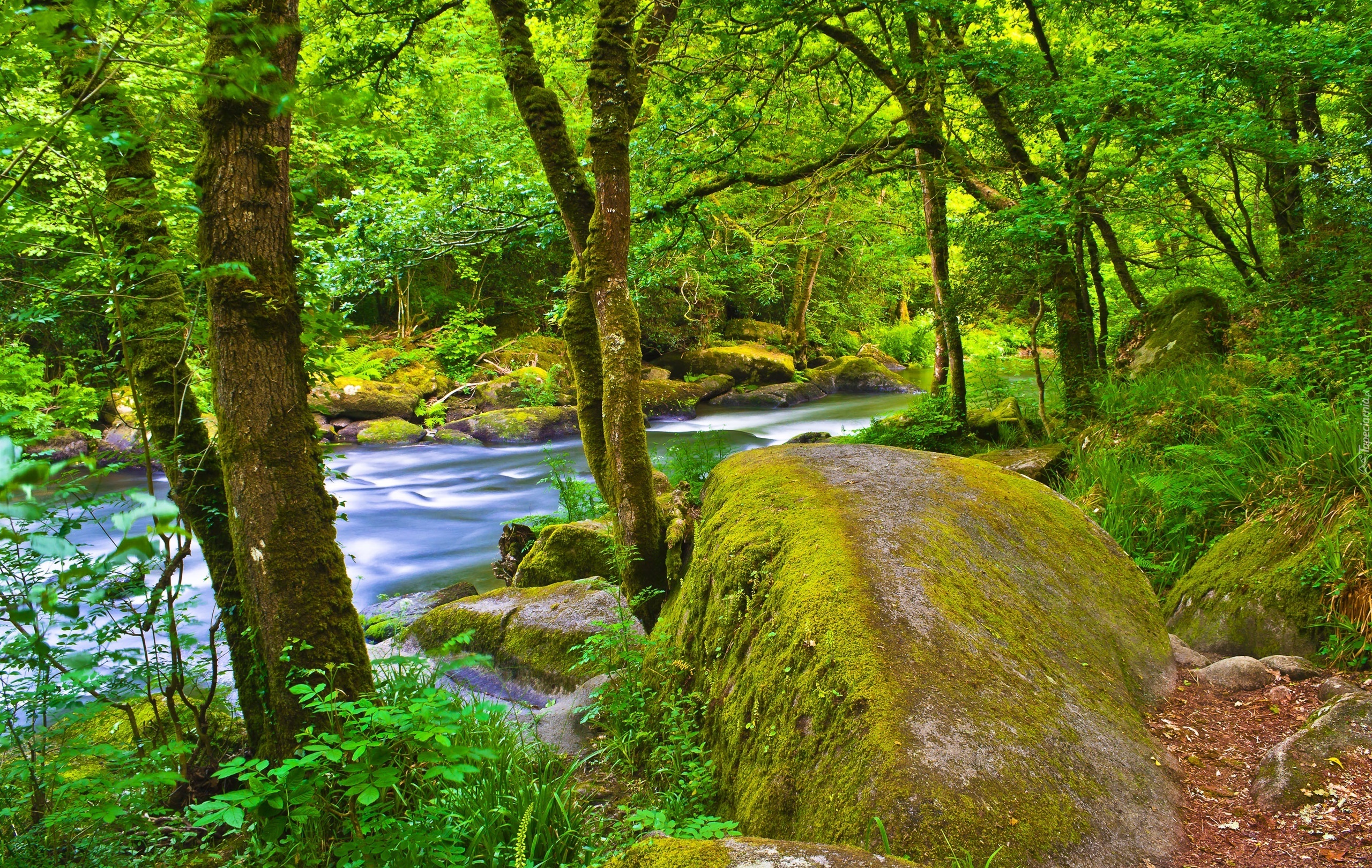 Edytor tapety: Las, Rzeka, Kamienie, Głazy