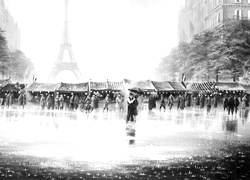 Edytor tapety: Malarstwo, Obraz, Deszcz, Ludzie, Ulica, Wieża, Eiffla