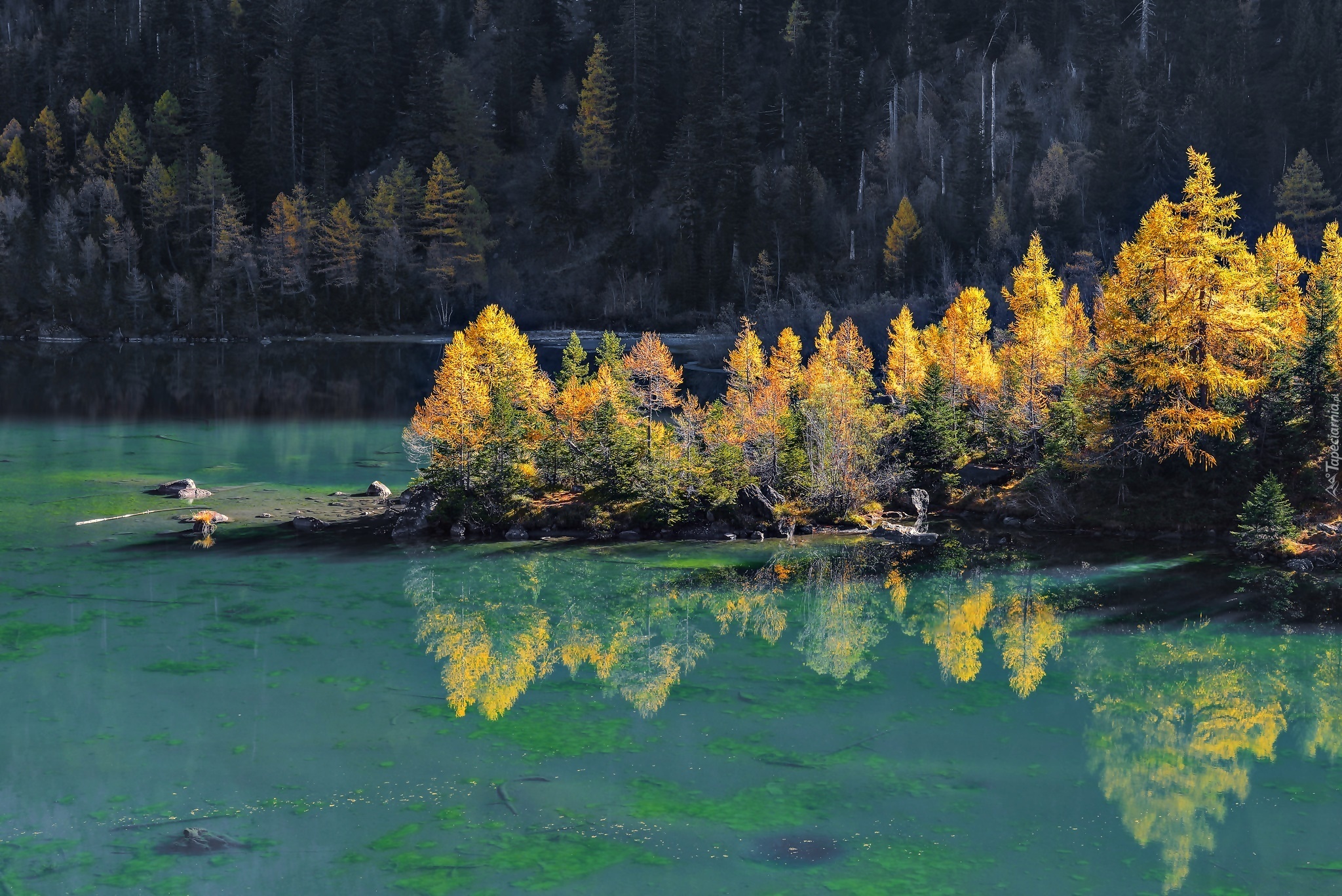Edytor tapety: Jezioro, Lasy, Jesień, Wyspa