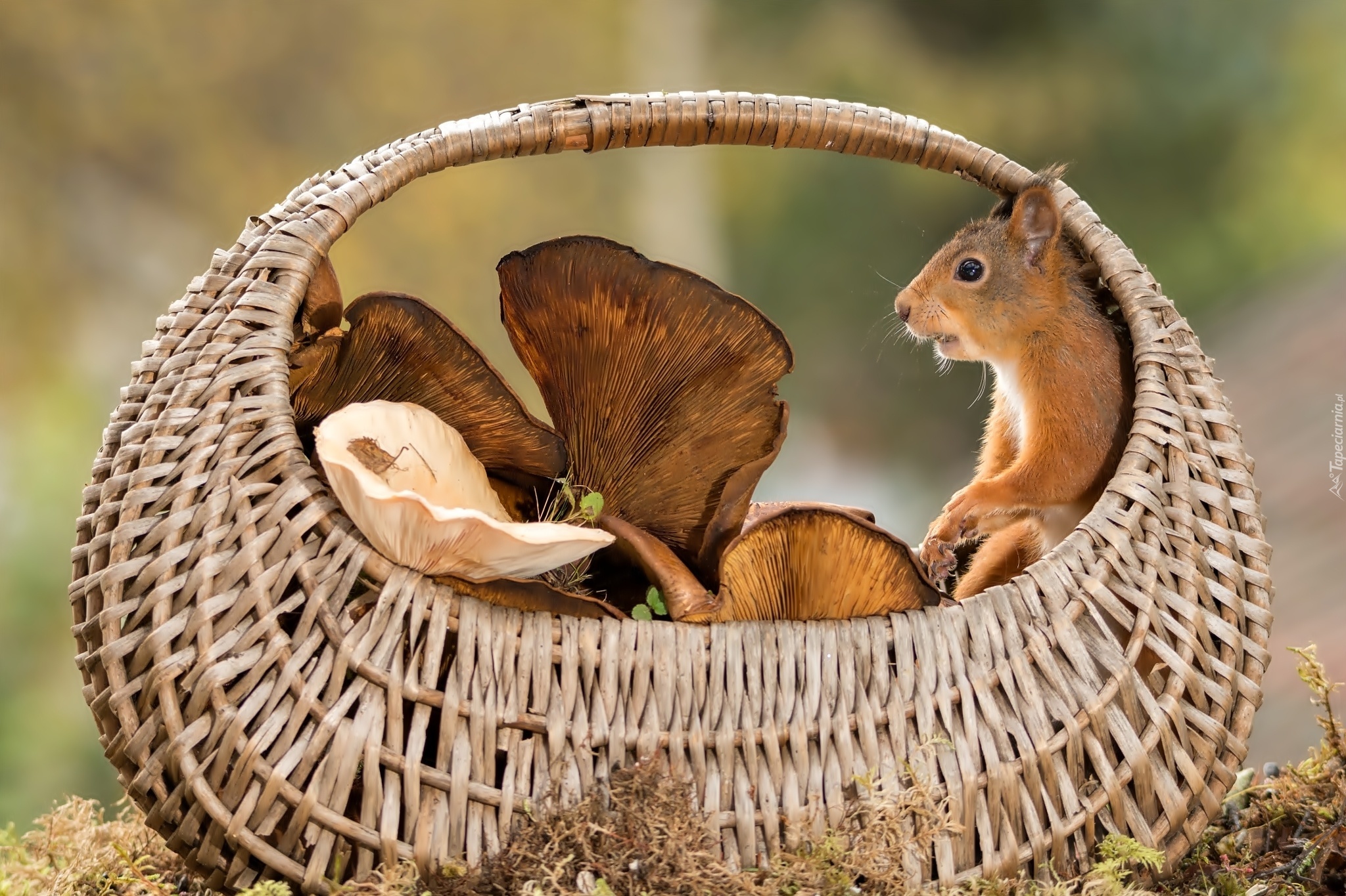 Edytor tapety: Wiewiórka, Grzyby, Koszyk