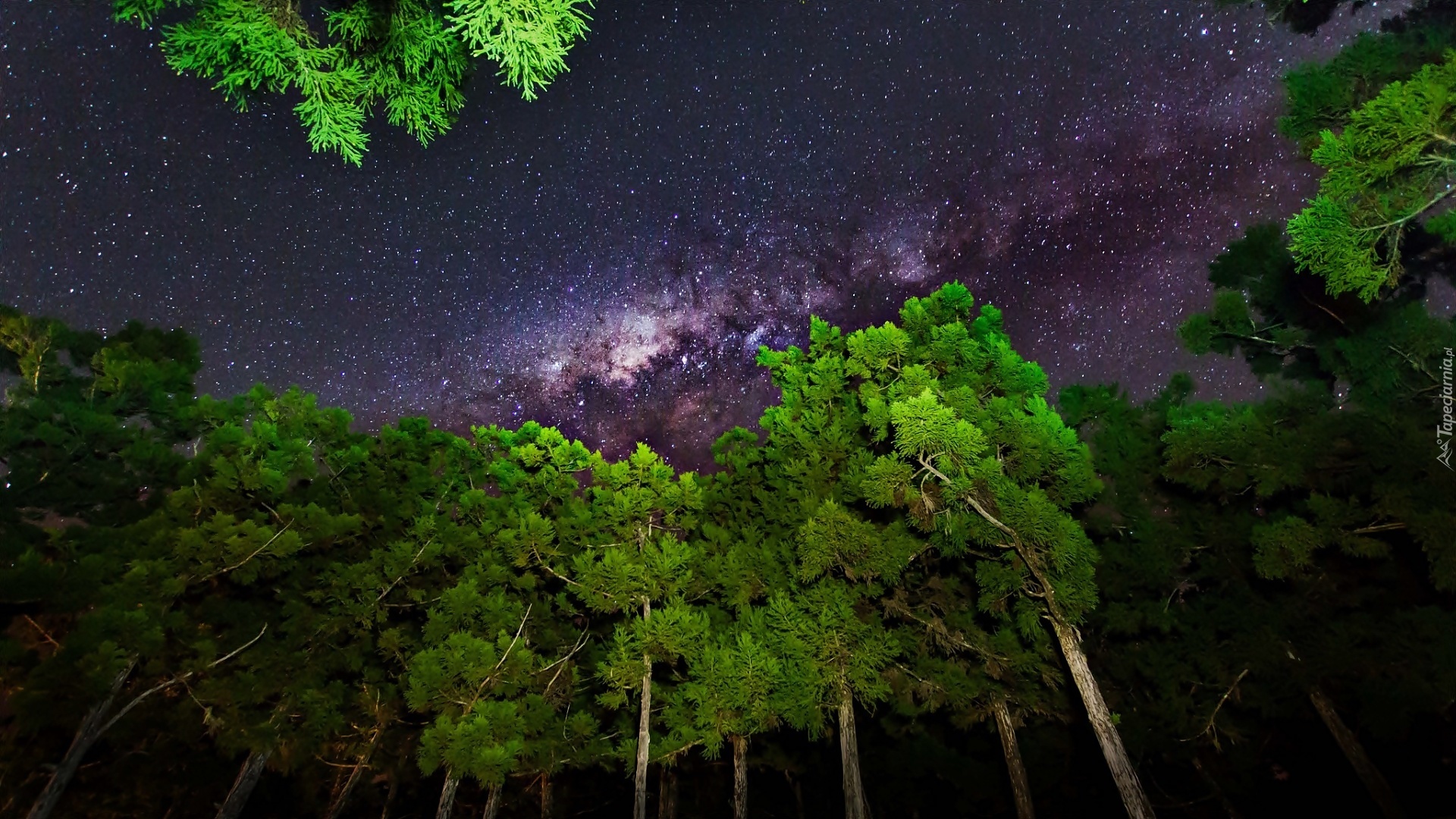 Edytor tapety: Noc, Niebo, Gwiazdy, Drzewa
