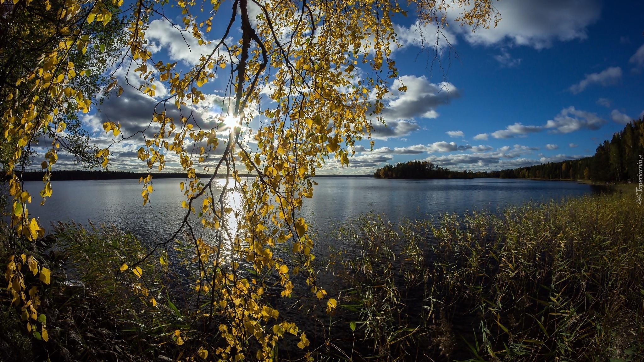 Edytor tapety: Jezioro, Drzewa, Trawy, Lasy, Promienie, Słońca, Lato