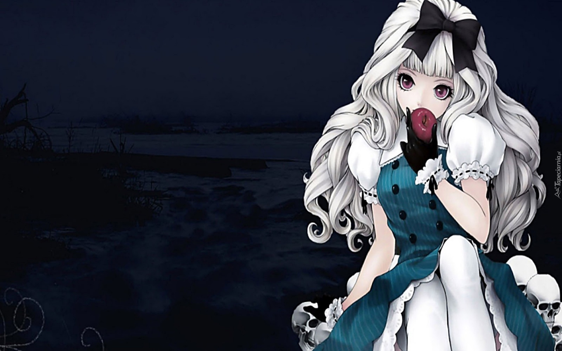 Edytor tapety: Manga, Anime, Dziewczyna,Jasnowłosa ,Jabłko