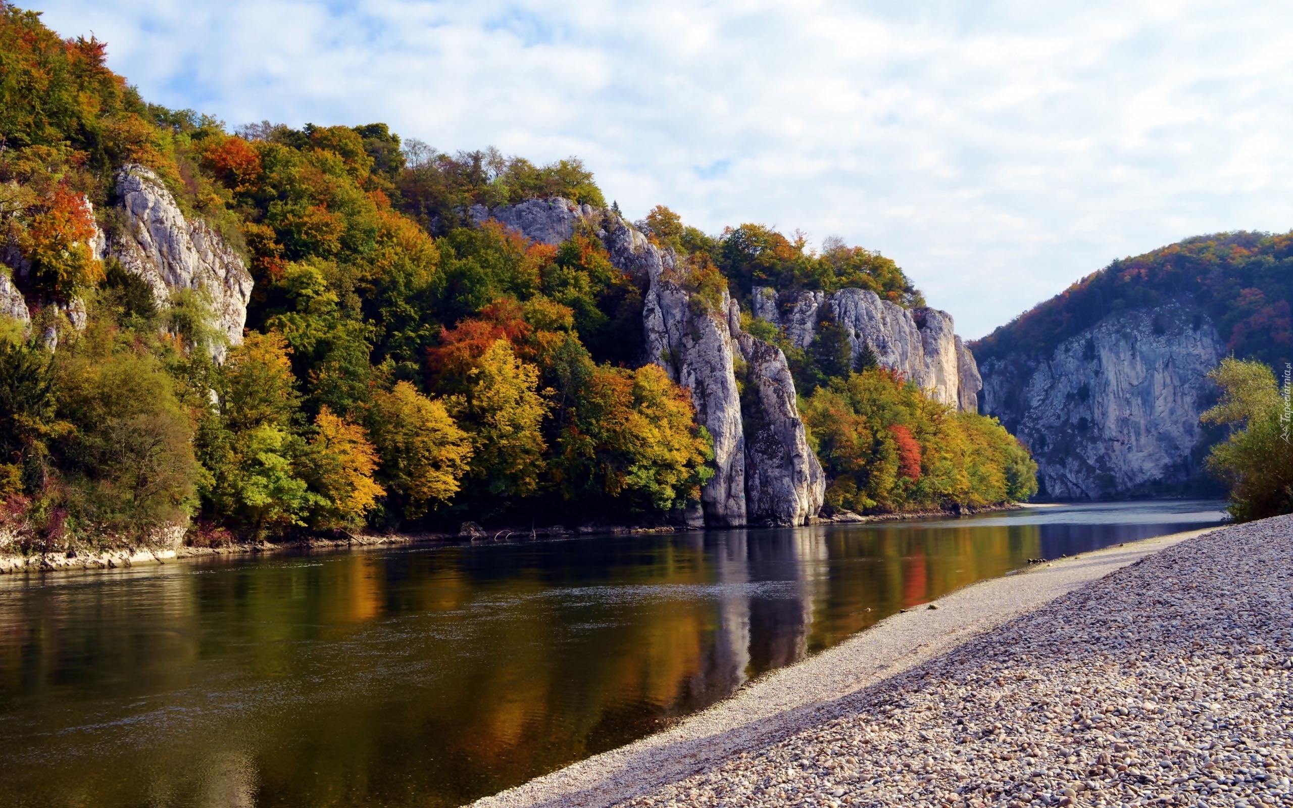Edytor tapety: Rzeka, Skały, Drzewa, Jesień