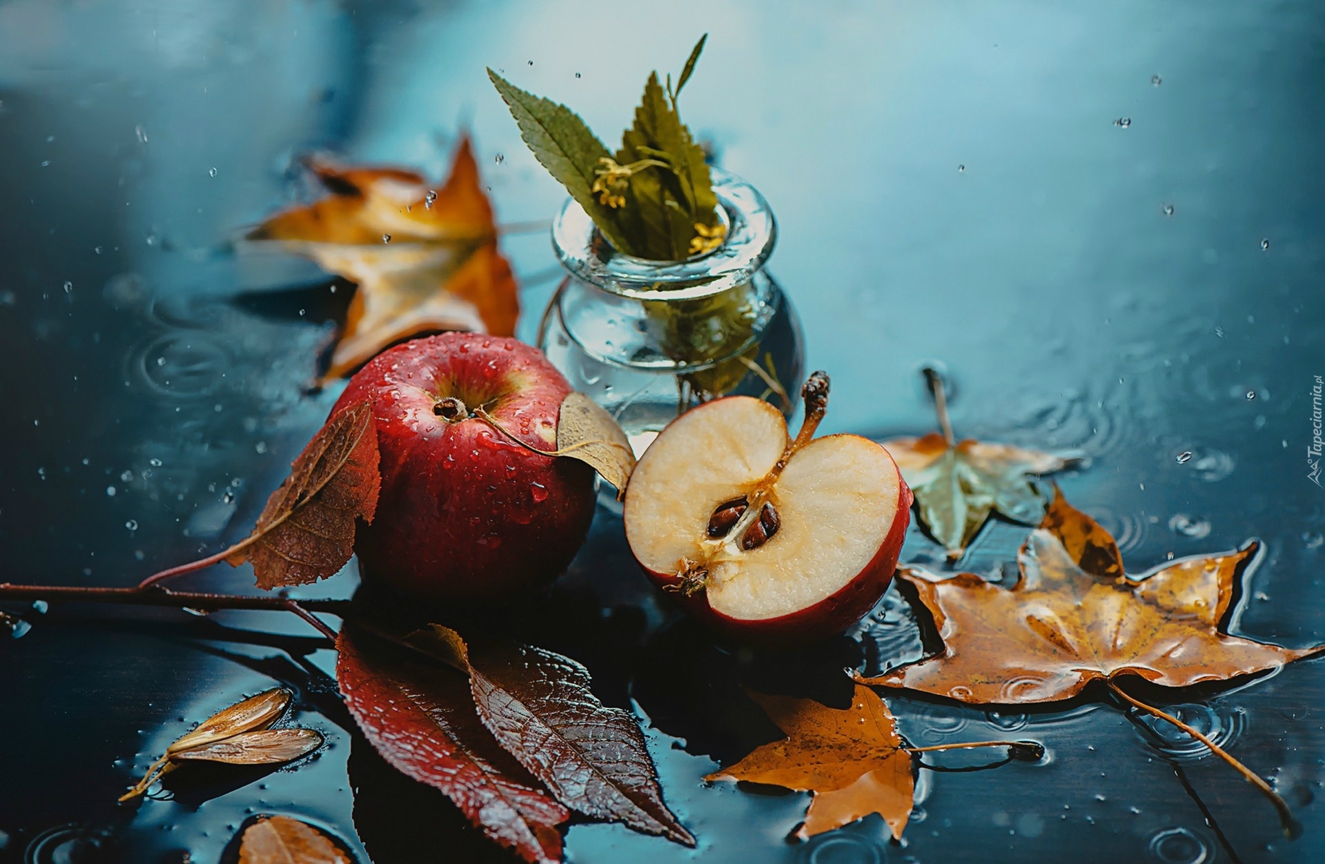 Edytor tapety: Jesień, Liście, Jabłka