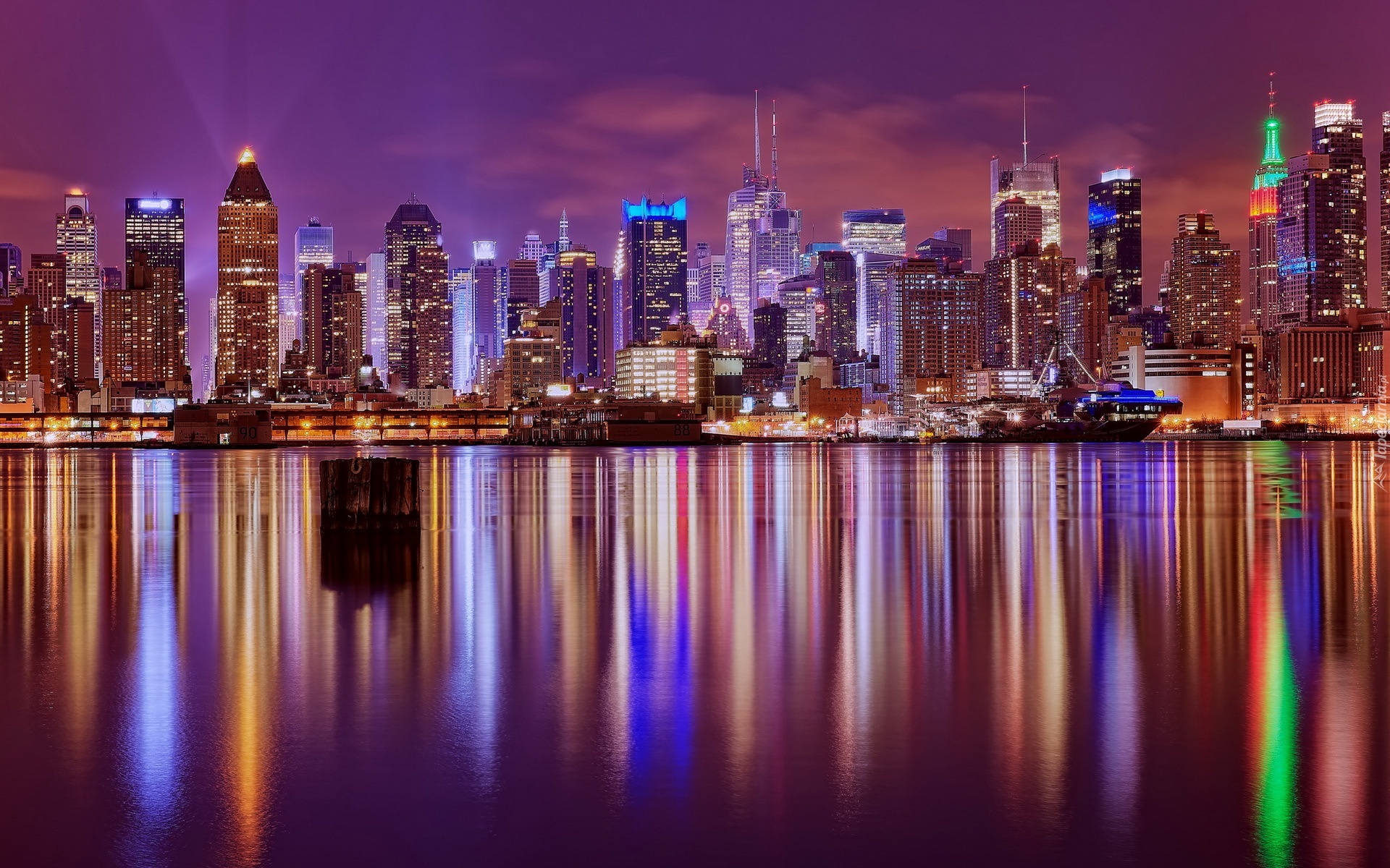 Edytor tapety: Miasto, Nocą, Odbicie, Drapacze, Chmur