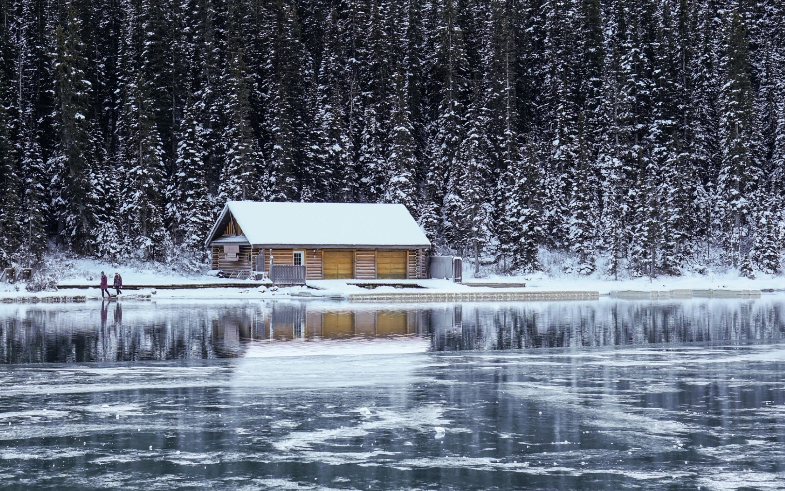 Edytor tapety: Zima, Las, Rzeka , Lód, Dom