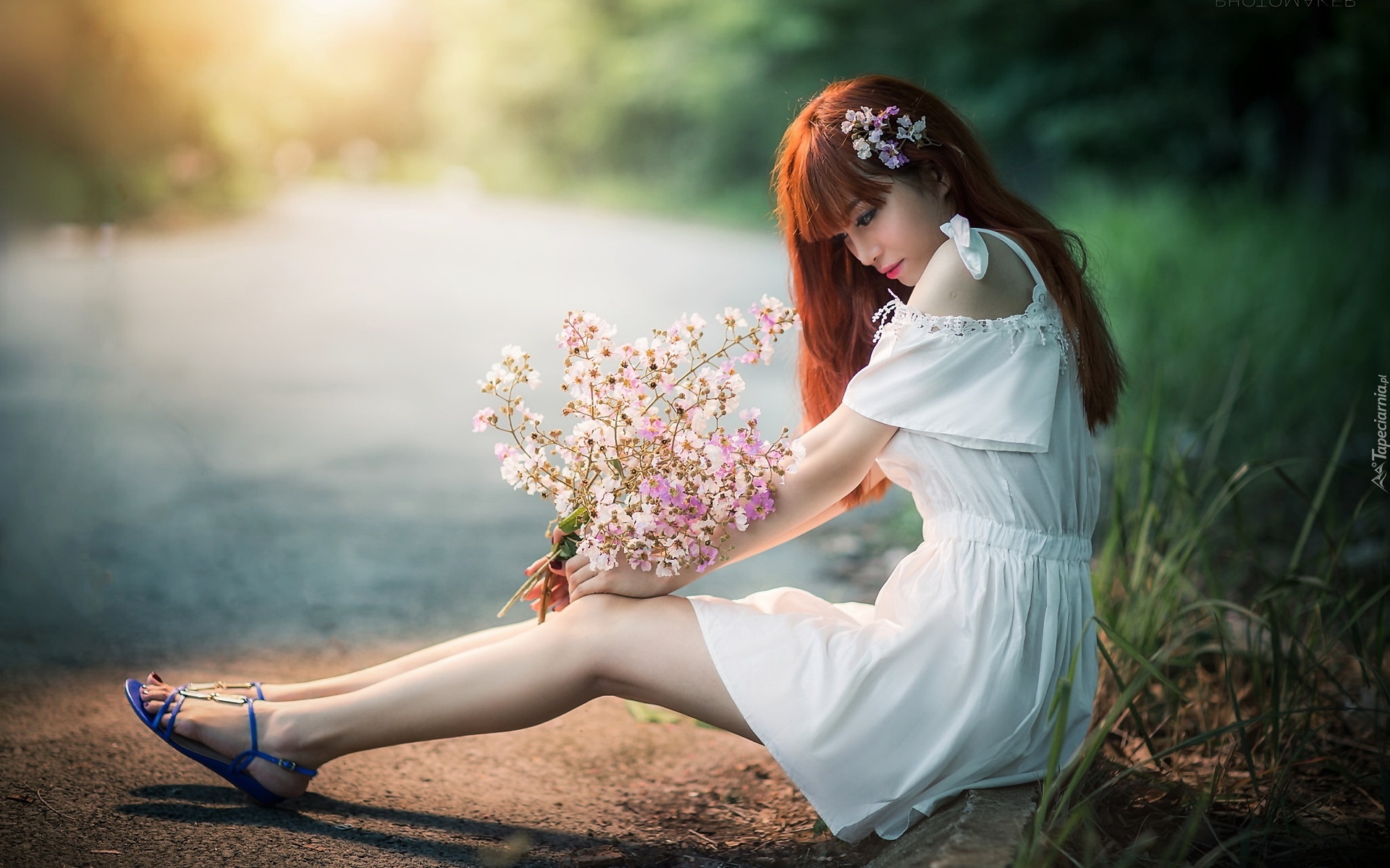Edytor tapety: Dziewczyna, Bukiet, Kwiatów