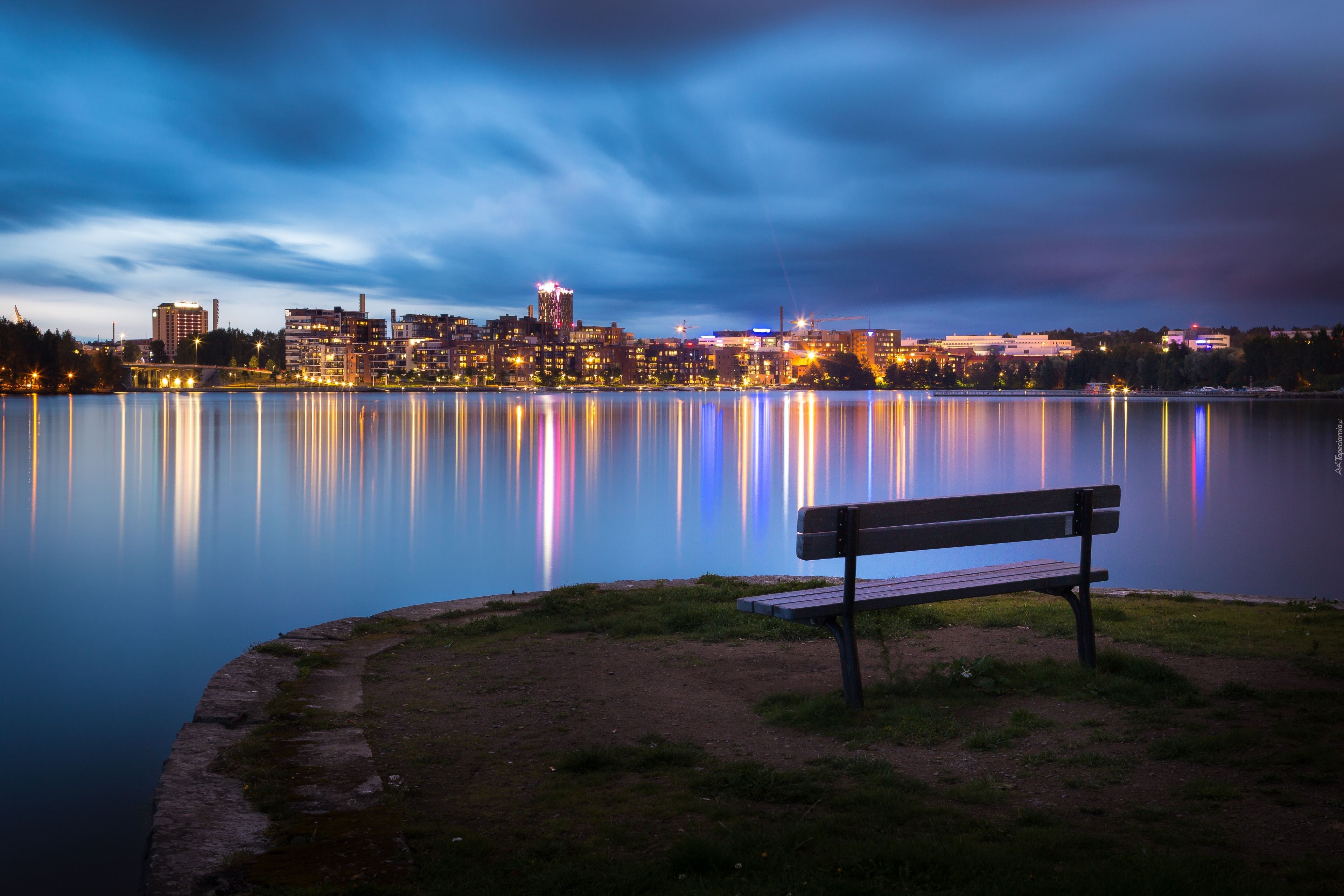 Edytor tapety: Ławka, Miasto, Noc