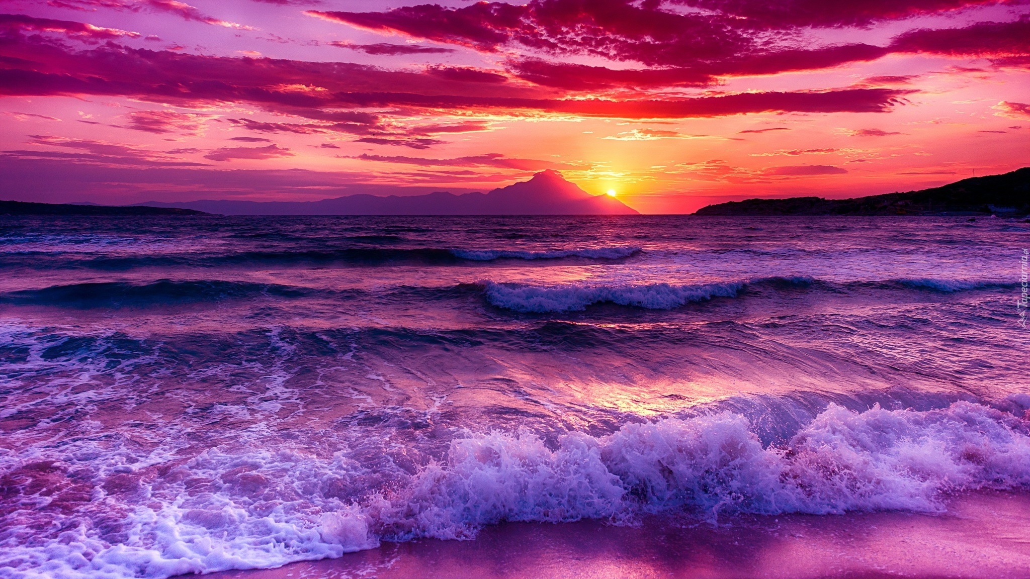 Edytor tapety: Morze, Fale, Zachód Słońca, Lato, Góry