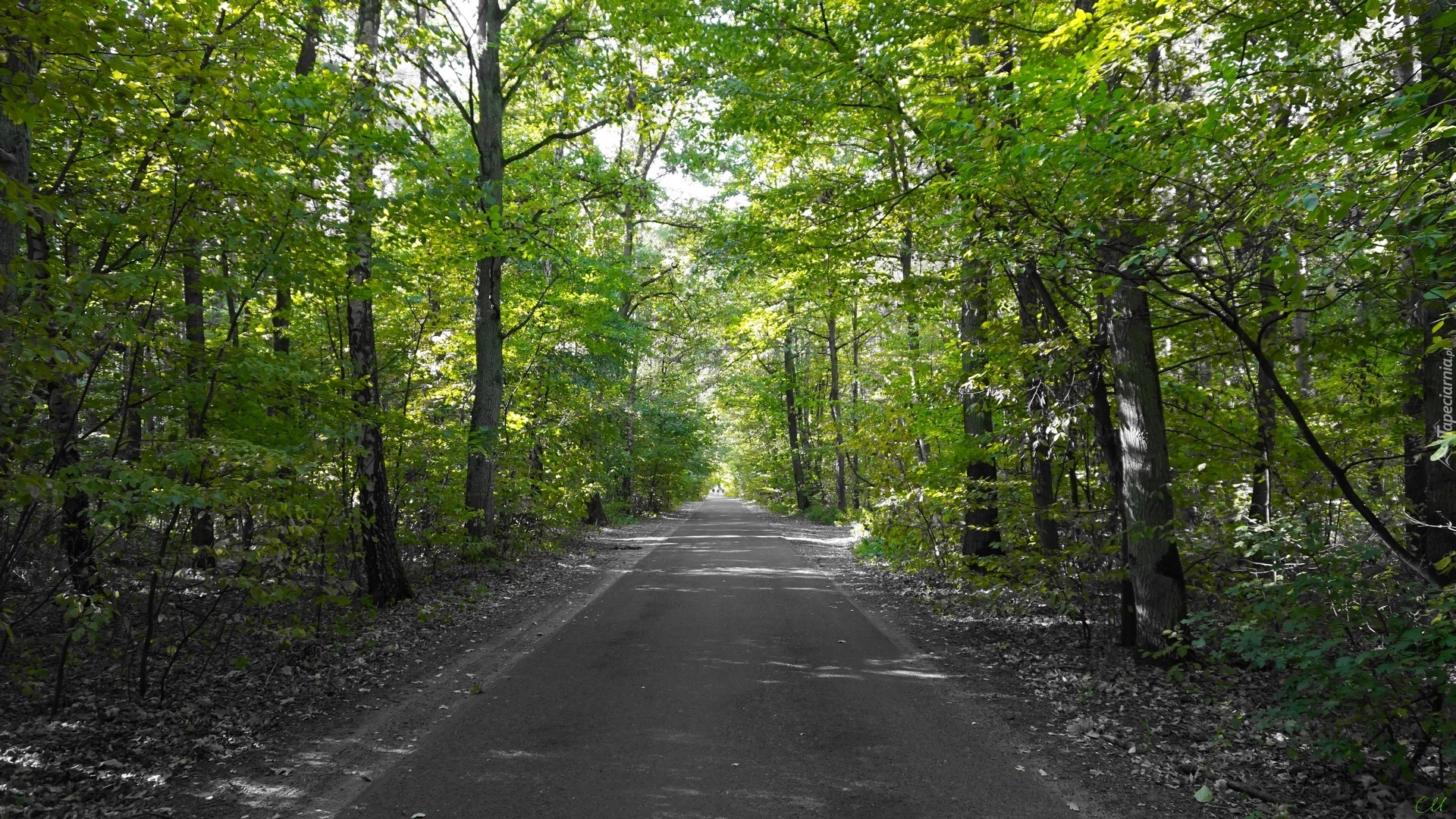 Edytor tapety: Las, Drzewa, Droga, Skala, Szarości