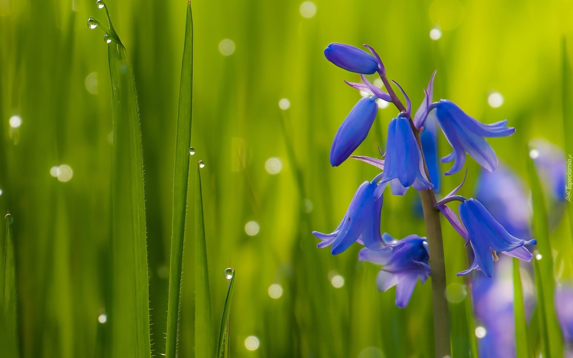 Edytor tapety: Dzwonek, Krople, Trawa, Makro