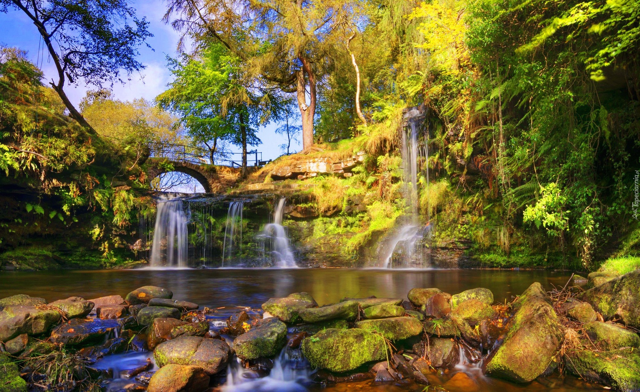 Edytor tapety: Jesienny, Park, Wodospady, Mostek, Roślinność