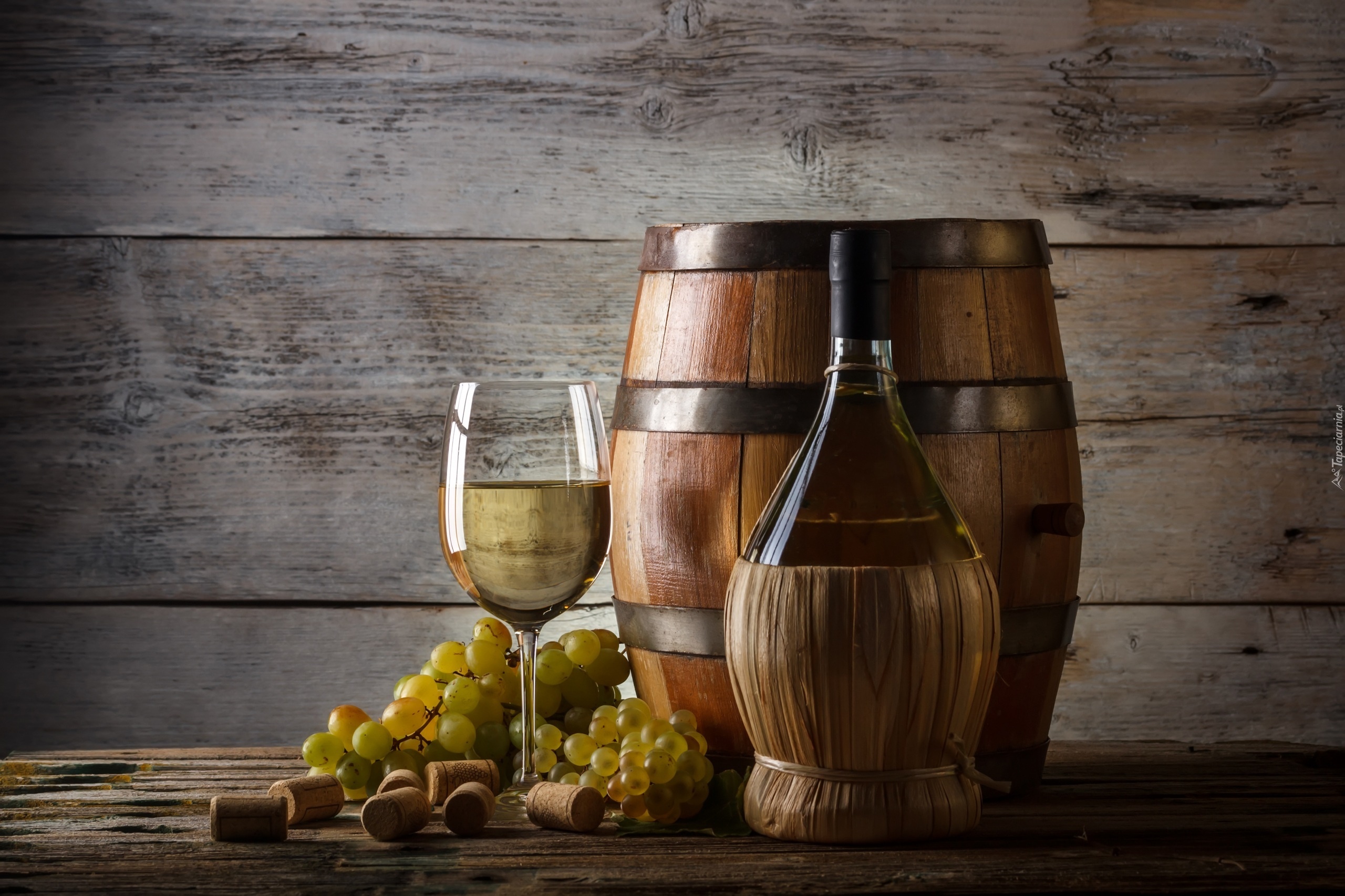 Edytor tapety: Kieliszek, Wino, Beczka, Antałek, Winogrona, Butelka