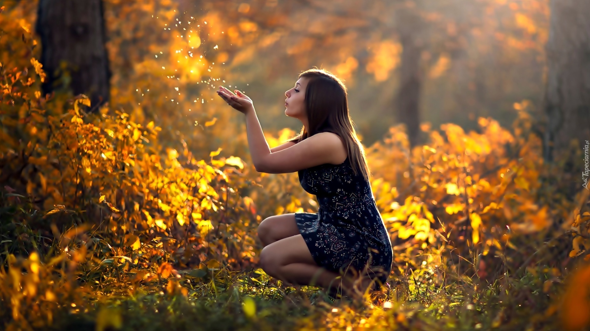 Edytor tapety: Kobieta, Las, Jesień, Liście