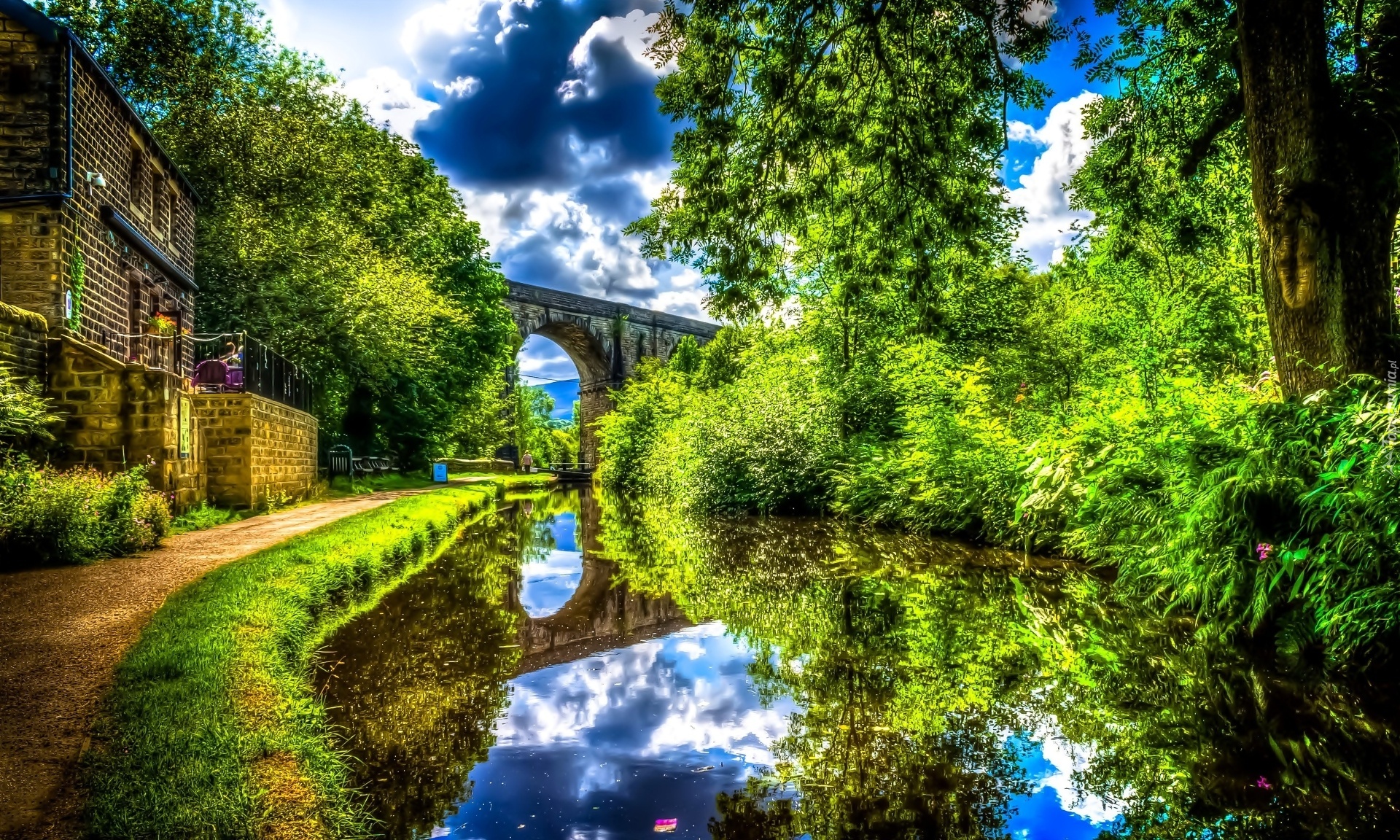 Edytor tapety: Dom, Rzeka, Drzewa, HDR