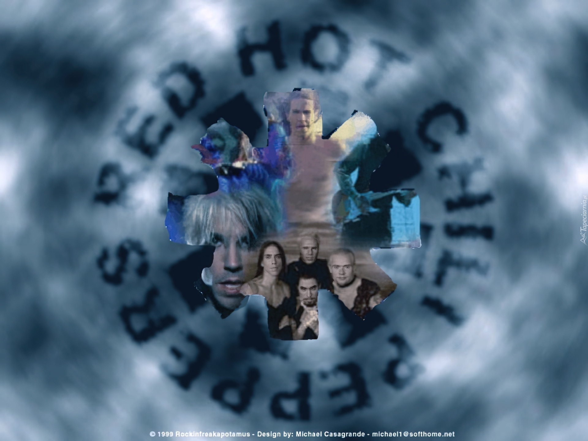 Edytor tapety: Red Hot Chili Peppers,znaczek , twarze zespołu