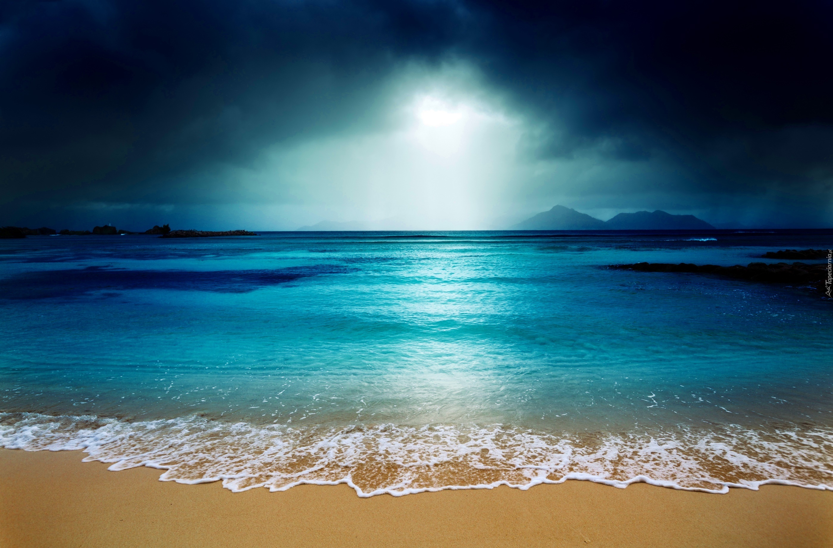 Edytor tapety: Ocean, Plaża, Noc, Poświata Księżyca