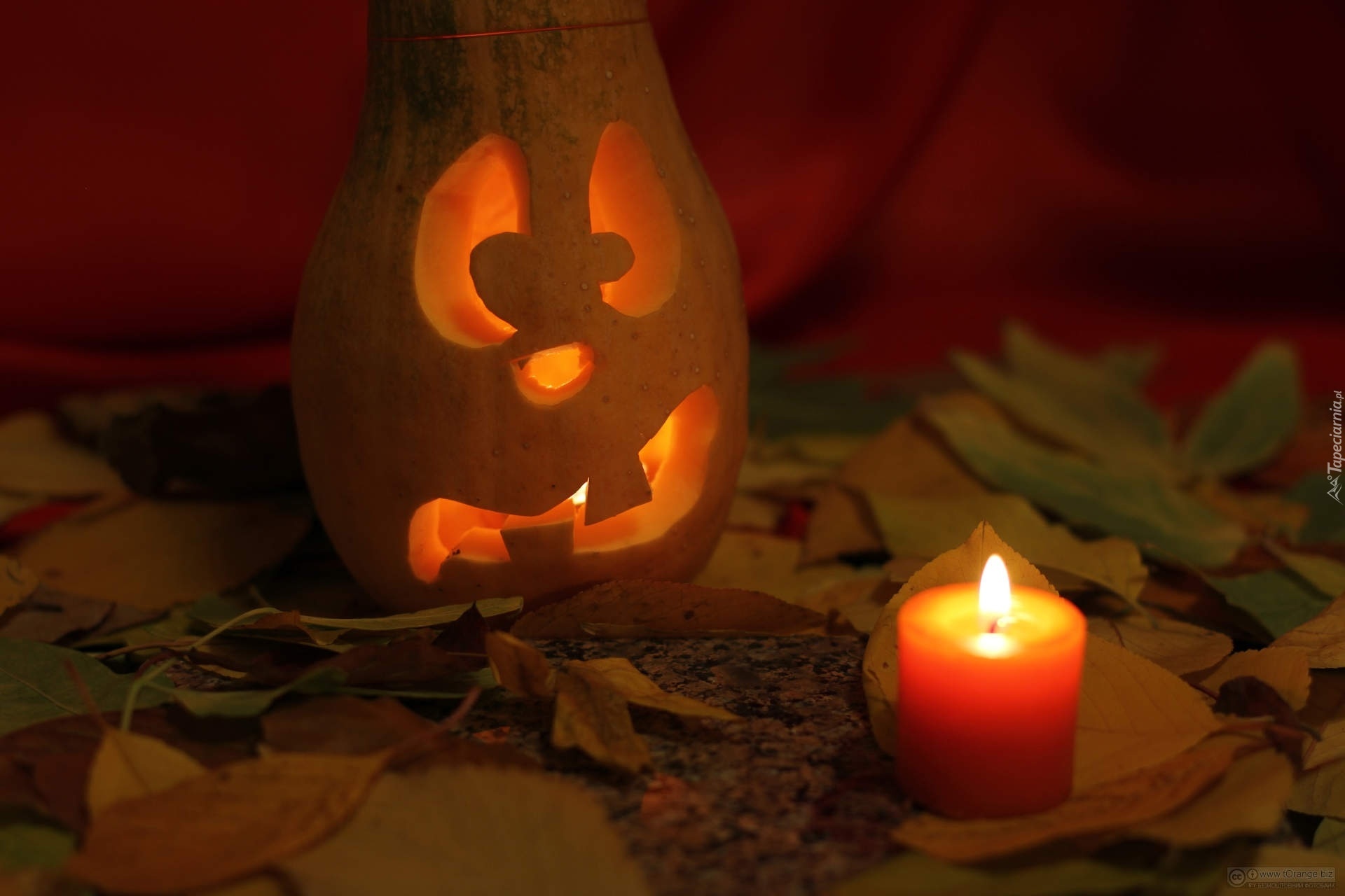 Edytor tapety: Dynia, Świeczka, Liście, Jesień, Halloween