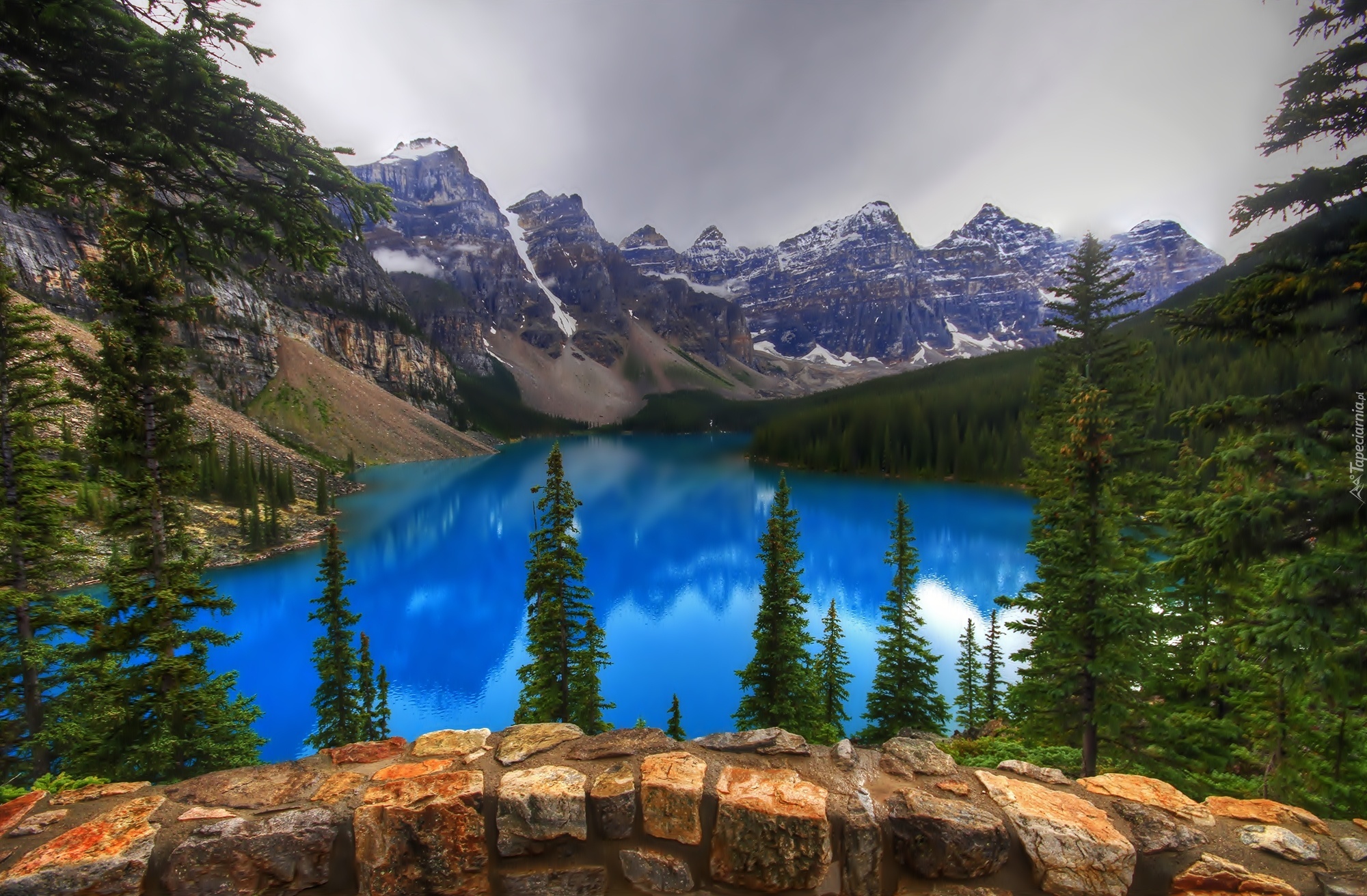 Edytor tapety: Kanada, Prowincja Alberta, Park Narodowy Banff, Jezioro Moraine, Góry, Świerki