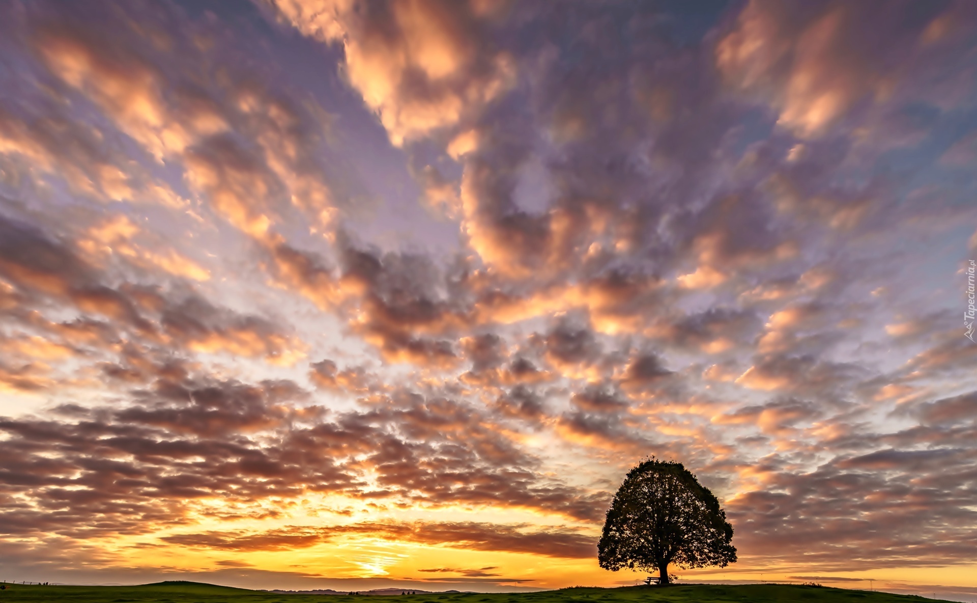 Edytor tapety: Niebo, Wschód Slońca, Obłoki, Drzewo, Chmury