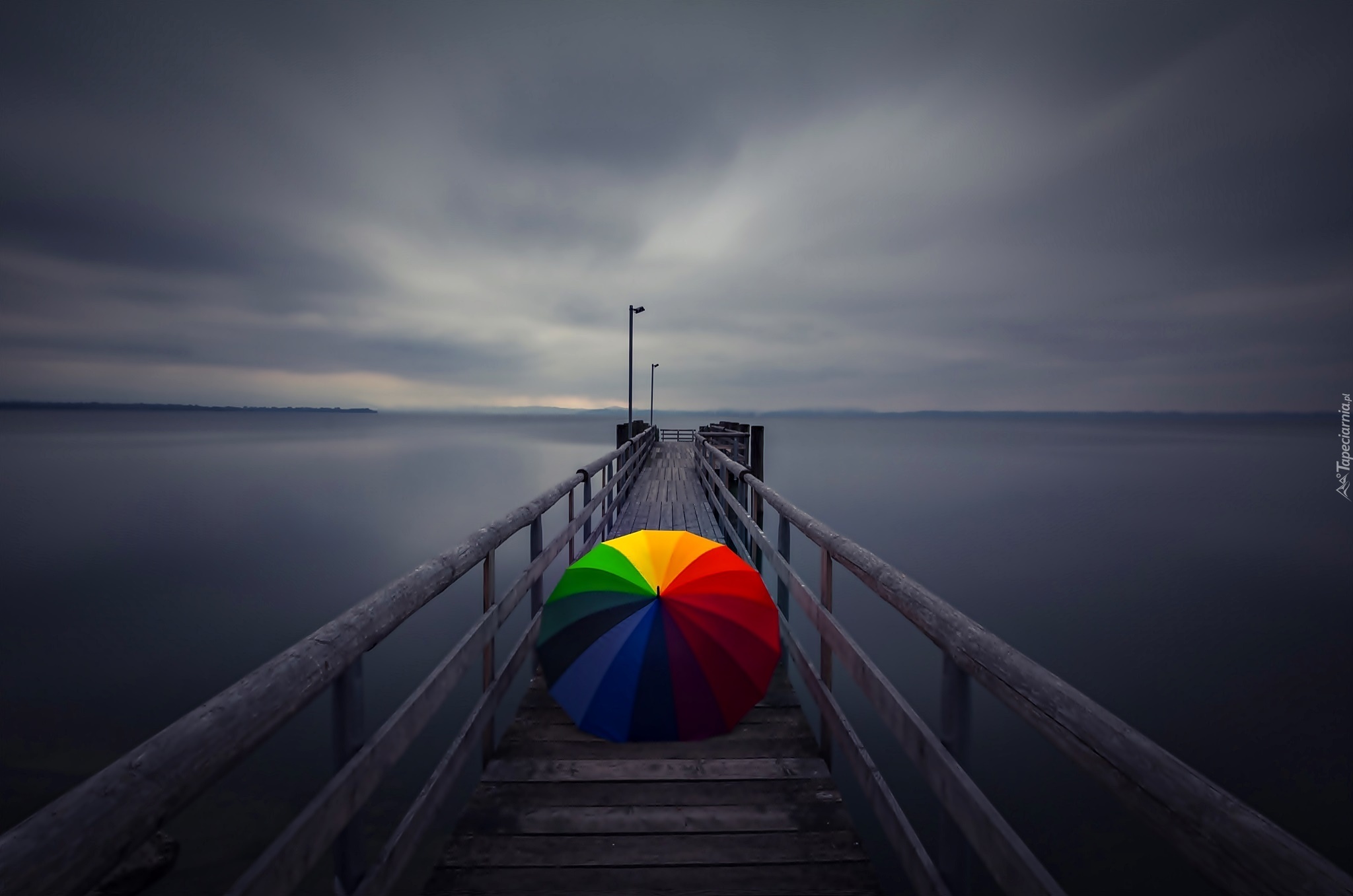 Edytor tapety: Molo, Parasol, Morze, Zmierzch